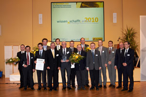 Ministerialdirigent Jörg Geiger übereichte den Sonderpreis des Sächsischen Staatsministeriums an das Team um "ALUHEAT GmbH", Freiberg