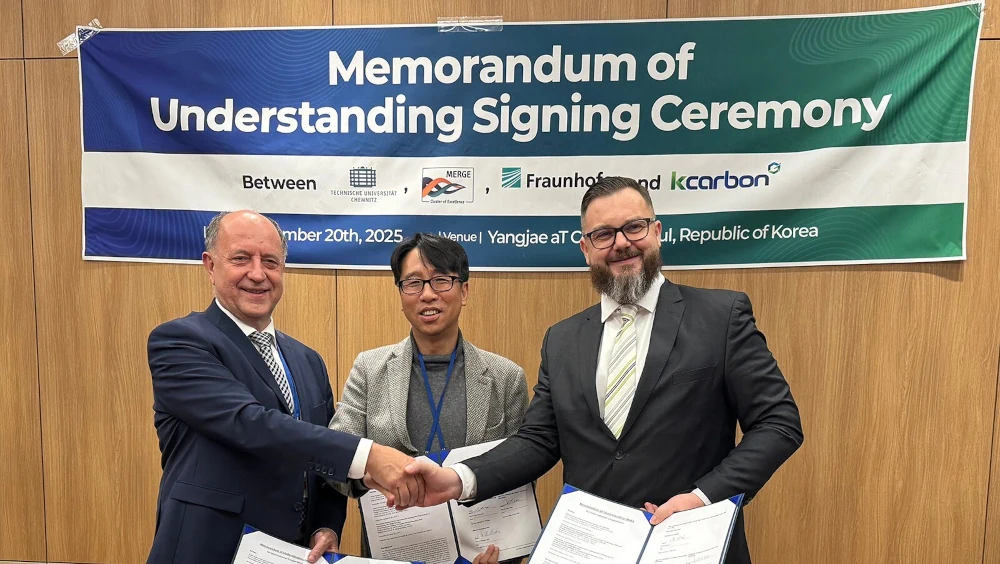 Im Rahmen eines auf der internationalen Fachmesse „Carbon Korea 2025“ in Seoul unterzeichneten Memorandum of Understanding (MoU) arbeiten KCARBON, die Technische Universität Chemnitz – vertreten durch die Carbon LabFactory Sachsen – sowie das Fraunhofer-Institut für Angewandte Polymerforschung (IAP) künftig enger zusammen. Ziel der Kooperation ist es, die internationale Zusammenarbeit entlang der gesamten Wertschöpfungskette von der Carbonfaserherstellung bis hin zu hochleistungsfähigen Leichtbaustrukturen auszubauen.