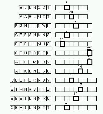 Tragen Sie die markierten Buchstaben der gefundenen Wörter hier ein,