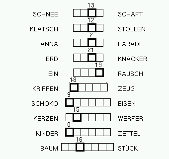 Finden Sie jeweils das richtige Wort, mit dem das erste Wort am Ende und das zweite