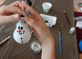 Die Wichtel denken ökologisch und haben kaputte Glühlampen hinter den Adventskalenderfensterchen nach und nach durch warmweiße LEDs ersetzt. Im Laufe der Jahre sammelten sich so 24 nicht mehr funktionstüchtige „Birnen“ an, welche die Wichtel aber nicht einfach so wegwerfen können. Auf der Suche nach Ideen zur Nachnutzung wurden sie fündig – aus den alten Glühlampen lässt sich hervorragend Christbaumschmuck basteln. Kinder haben ebenfalls große Freude bei dieser Arbeit.