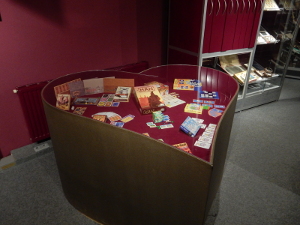 Aufmerksame Beobachter werden die Form der Vitrinen in der Mitte des Raumes bemerken. Sie spiegeln die Spielkartenfarben Karo, Pik, Herz und Kreuz wider. Und was es da sonst noch alles zu entdecken gibt! Bei einem Besuch sollten Sie unbedingt in die Schubladen schauen. Sonst entgehen Ihnen vielleicht die charmanten mit Schreibmaschine geschriebenen Ereigniskarten des selbstgefertigten Monopolys von Jens Träger.