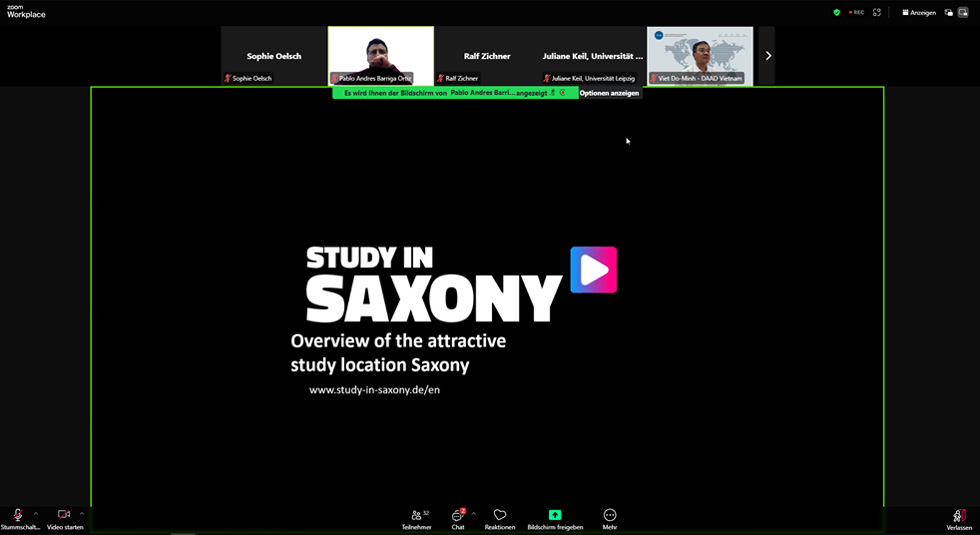 Nach dem erfolgreichen Debüt im Dezember 2024, fanden am 12. und 13. März 2025 zwei weitere Online Events statt, bei denen sich ausländische Studierende u.a. über die TUC und regionale Arbeitgeber informieren konnten. Insgesamt 150 Studieninteressierte aus Taiwan, Vietnam und Indien nutzten diese Gelegenheit und lauschten den Erläuterungen von Prof. Dr. Stephan Odenwald, Inhaber der Professur Sportgerätetechnik, und Prof. Dr. Ralf Zichner, Inhaber der Professur Hochfrequenztechnik und Allgemeine Elektrotechnik, von der TUC sowie Benjamin Bielefeld, Geschäftsführer der HÖRMANN Rawema Engineering & Consulting GmbH. Sie stellten erneut die Studiengänge der TUC vor und gewährten Einblicke in den sächsischen Arbeitsmarkt. Organisiert wurden die Events von der Universität Leipzig und der TU Dresden mit tatkräftiger Unterstützung des Career Service der TUC.