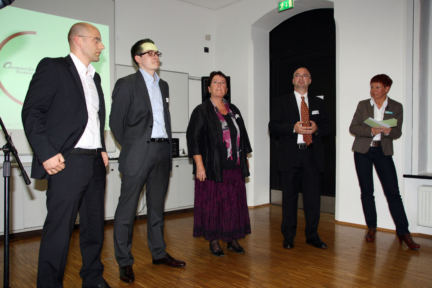 Als Sprecher traten Prof. Dr. Ralf Zichner von der Fakultät für Elektrotechnik und Informationstechnik und Prof. Dr. Michael Mayer von der Fakultät für Wirtschaftswissenschaften der TU Chemnitz sowie Vaibhav Banmote, ein indischer Student vom NIT Rourkela, der derzeit seinen Master an der TU Chemnitz absolviert, auf.