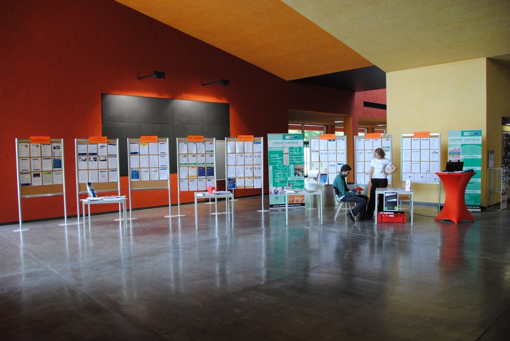 Am eigentlichen Messetag ging es dann im Neuen Hörsaalgebäude zur Sache. Die Wichtigkeit von Kontaktmessen schon lange erkannt, war es nur logisch, dass der Career Service hier natürlich auch vor Ort vertreten war. Neben Informationen zu Praktika und den Leistungen des Career Service boten wir an diesem Tag in erster Linie die Möglichkeit zum Bewerbungsunterlagen-Check. Die Nachfrage der Studierenden war groß, unsere Berater entsprechend am rotieren. Schön war's!
