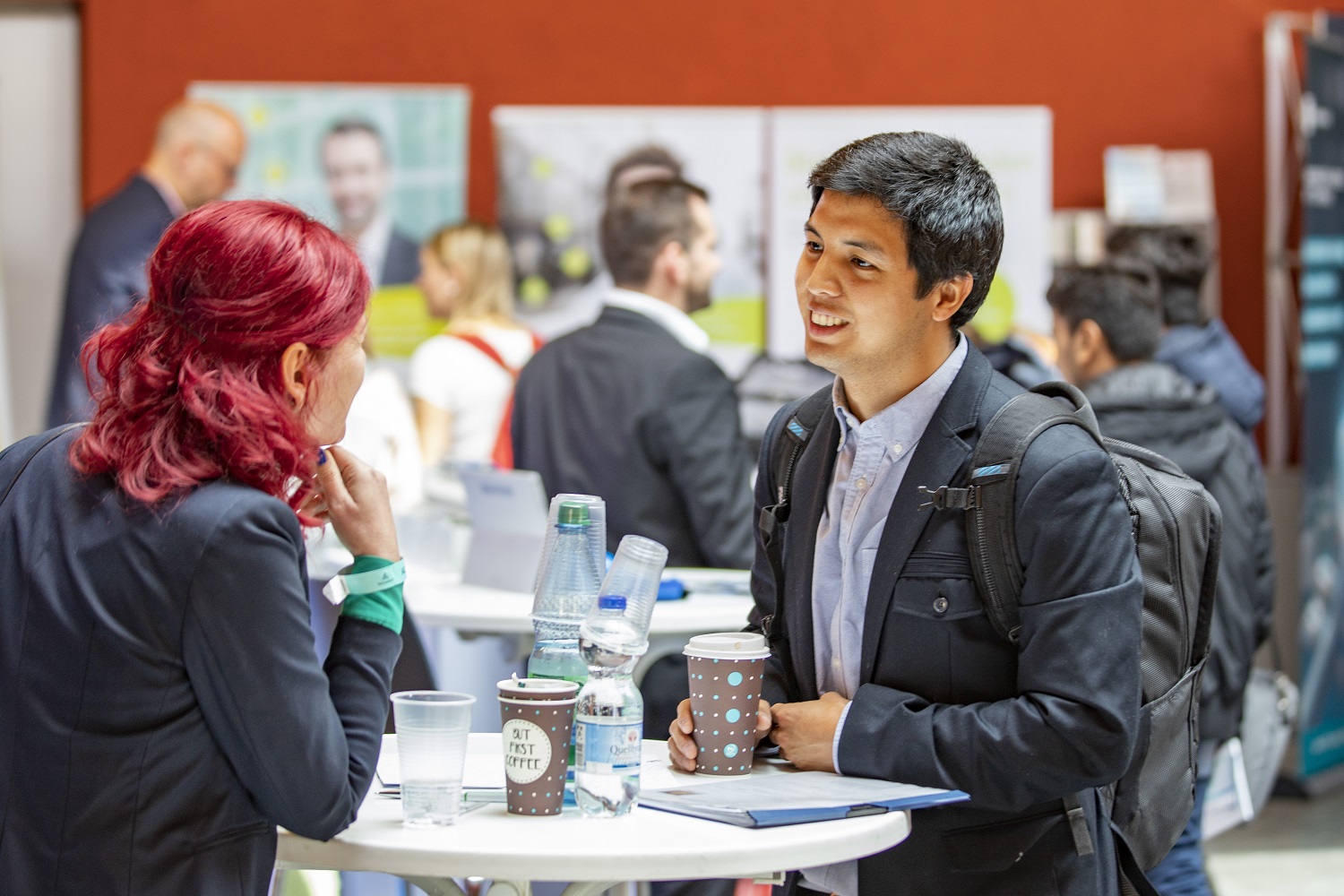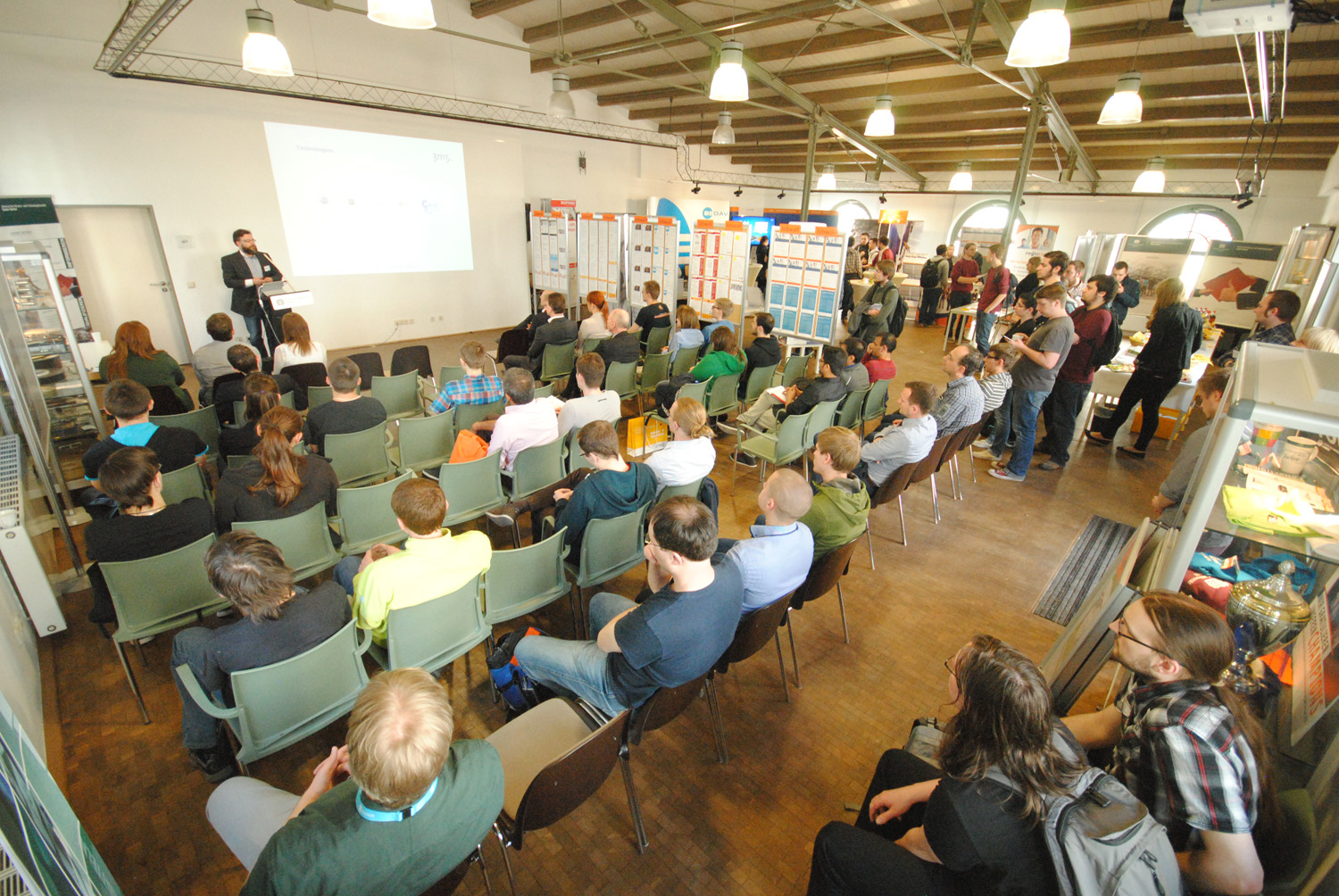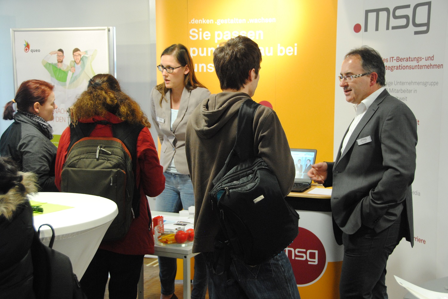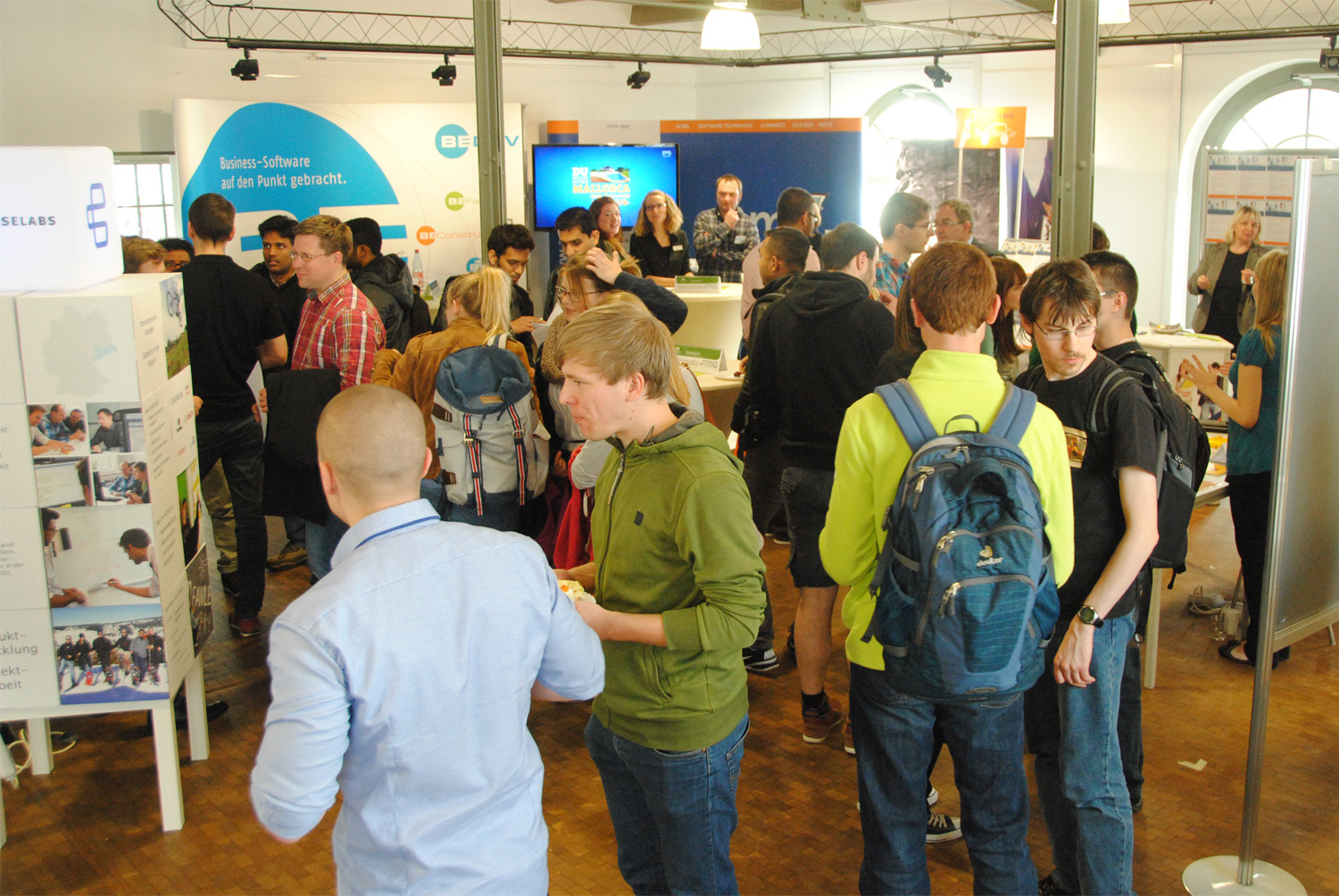 Am Messetag selbst nutzten zahlreiche Interessierte die Gelegenheit, potenzielle Arbeitgeber persönlich zu treffen und verschafften sich so einen Überblick über Wünsche, Anforderungen und Angebote der Unternehmen. Jobwalls informierten über aktuelle Jobs, Praktika und Abschlussarbeitsthemen.