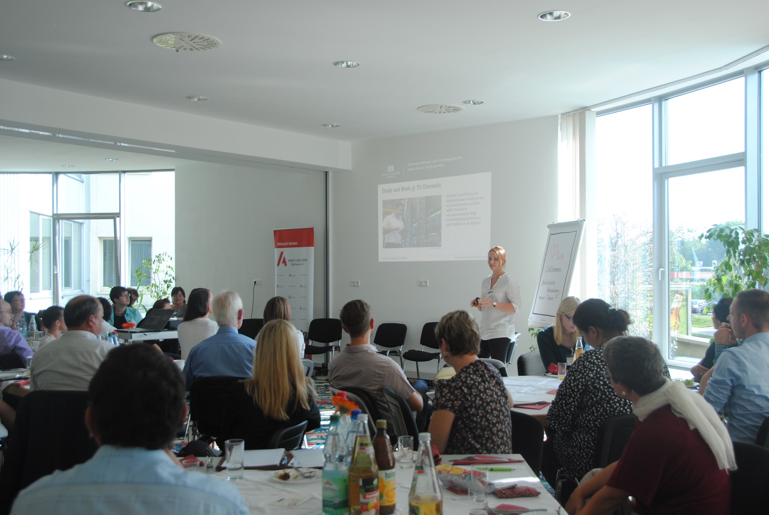 An diesem Tag präsentierten sich sechs Bildungsträger (Volkshochschule Chemnitz, F+U Sachsen, Saxony International School Carl Hahn, GGB Gesellschaft zur ganzheitlichen Bildung gGmbH Sachsen, Bildungsinstitut PSCHERER gGmbH, Texulting) den 38 anwesenden Studierenden und Absolventen als potenzielle Arbeits- und Praktikumseinrichtungen.