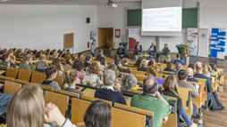 Vom 18. bis zum 21. Oktober bot die Chemnitzer Herbstuniversität allen studieninteressenten Schülerinnen und Schülern die Gelegenheit, das Studium ihrer Wahl zu testen. In regulären Lehrveranstaltungen wie Vorlesungen, Seminaren und Übungen sowie Workshops und speziellen veranstaltungen konnten sie den Studienalltag „live“ erleben. Wir waren ebenfalls im Neuen Hörsaalgebäude vor Ort, um darüber hinaus gehende Fragen zu beantworten, z.B. zu den Stichworten "Chancen am Arbeitsmarkt" und "mögliche Zusatzqualifizierungen".