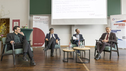 Bei einer Podiumsdiskussion standen die drei Rektoren Prof. Dr. Gerd Strohmeier (Technische Universität Chemnitz), Prof. Dr.-Ing. Stephan Kassel (Westsächsische Hochschule Zwickau) sowie Prof. Dr. Volker Tolkmitt (Hochschule Mittweida) den Gästen Rede und Antwort. Die offene Fragerunde drehte sich rund um Herausforderungen in der Fachkräftesicherung, internationale Trends in den wissenschaftlichen, wirtschaftlichen und industriellen Sektoren und die damit einhergehende Bedeutung der Career Service Arbeit.