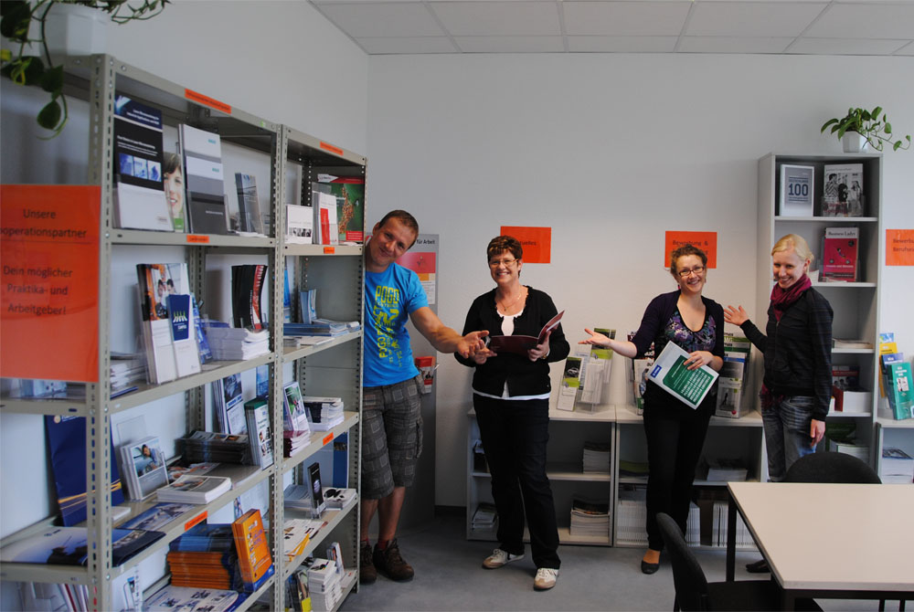 Es glänzt nun vor allem durch neue Regale und alphabetische Ordnung der Flyern und Broschüren unserer Partnerunternehmen. Aber natürlich findet ihr hier auch weiterhin unsere eigenen Publikationen sowie viele Infomaterialien zu Themen wie Bewerbung, Berufseinstieg und Auslandspraktika.