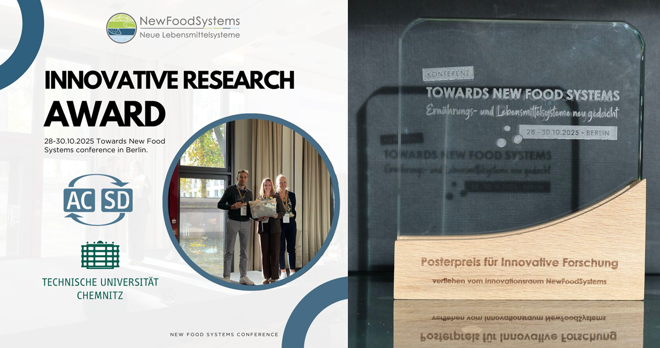 The "Towards NewFoodSystems" conference brought together around 300 participants from business, science, and politics in Berlin to discuss new nutrition and food systems. The ACSD professorship has been actively working for about two years in the BMFTR-funded NewFoodSystems innovation space on the development of algae-based foods (see the ENABLE project) and contributed two presentations and two poster presentations from ongoing research to the conference. We are pleased that our contribution entitled AI-based Computer Vision for advanced modeling and monitoring of microalgae cultivation was awarded the poster prize for "Innovative Research".