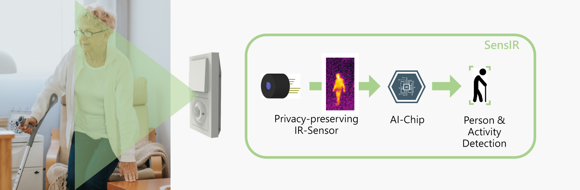 Ziel ist die Entwicklung eines stromsparenden, kosteneffizienten Edge-Devices mit Computer Vision Funktionalitäten (Detektion und Tracking von Personen, Erkennung von Aktivitäten), welches sehr niedrigauflösende bildgebende Infrarotsensoren einsetzt. Die geringe Auflösung verringert das aufkommende Datenvolumen und reduziert somit die Anforderungen an die eingesetzte Hardware. Gleichzeitig ist eine Identifikation der betreffenden Personen unmöglich. Allerdings existieren für derart niedrigauflösende bildgebende Infrarotsensoren keine leistungsfähigen Computer Vision Modelle und Verfahren. Die Erforschung und Entwicklung dieser Modelle ist der methodische Aspekt des Projektes. Der technische Aspekt ist die Entwicklung von Hardware, welche „maßgeschneidert“ für die entwickelten Modelle ist und diese deshalb besonders effizient und energiesparend auswerten kann.