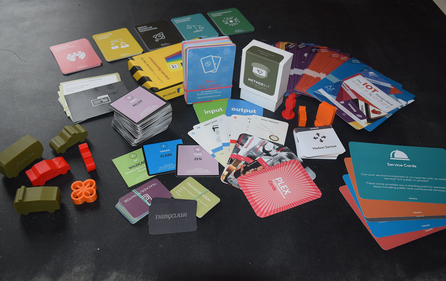 Eine Sammlung an Ideation Tools rund um das Thema Internet of Things: Mapping the IoT Toolkit, The Thing from the Future, ThinkPak, Tiles IoT Kit, Method Kit, IoT Design Deck, IoT Service Kit, Thingclash, knowCards, PLEX Cards