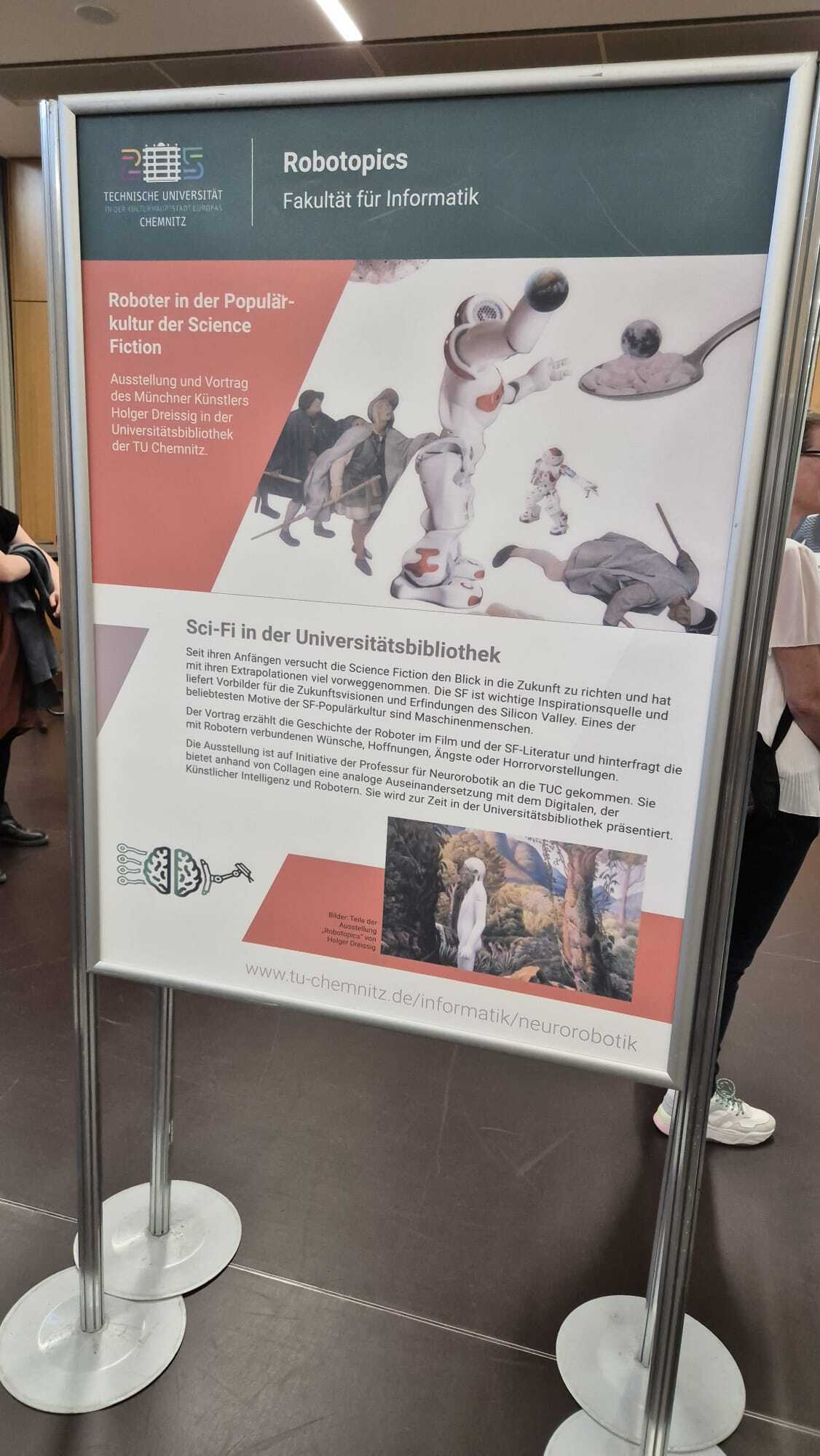 The ROBOTOPICS exhibition by Holger Dreissig is taking place again. This time with an analogue discussion about the digital, AI and robotics. The exhibition can currently be visited free of charge at the Unibibliotek 1st floor(Straße der Nation 33, 0911 Chemnitz). The exhibition will be open for six months. For more info click here.