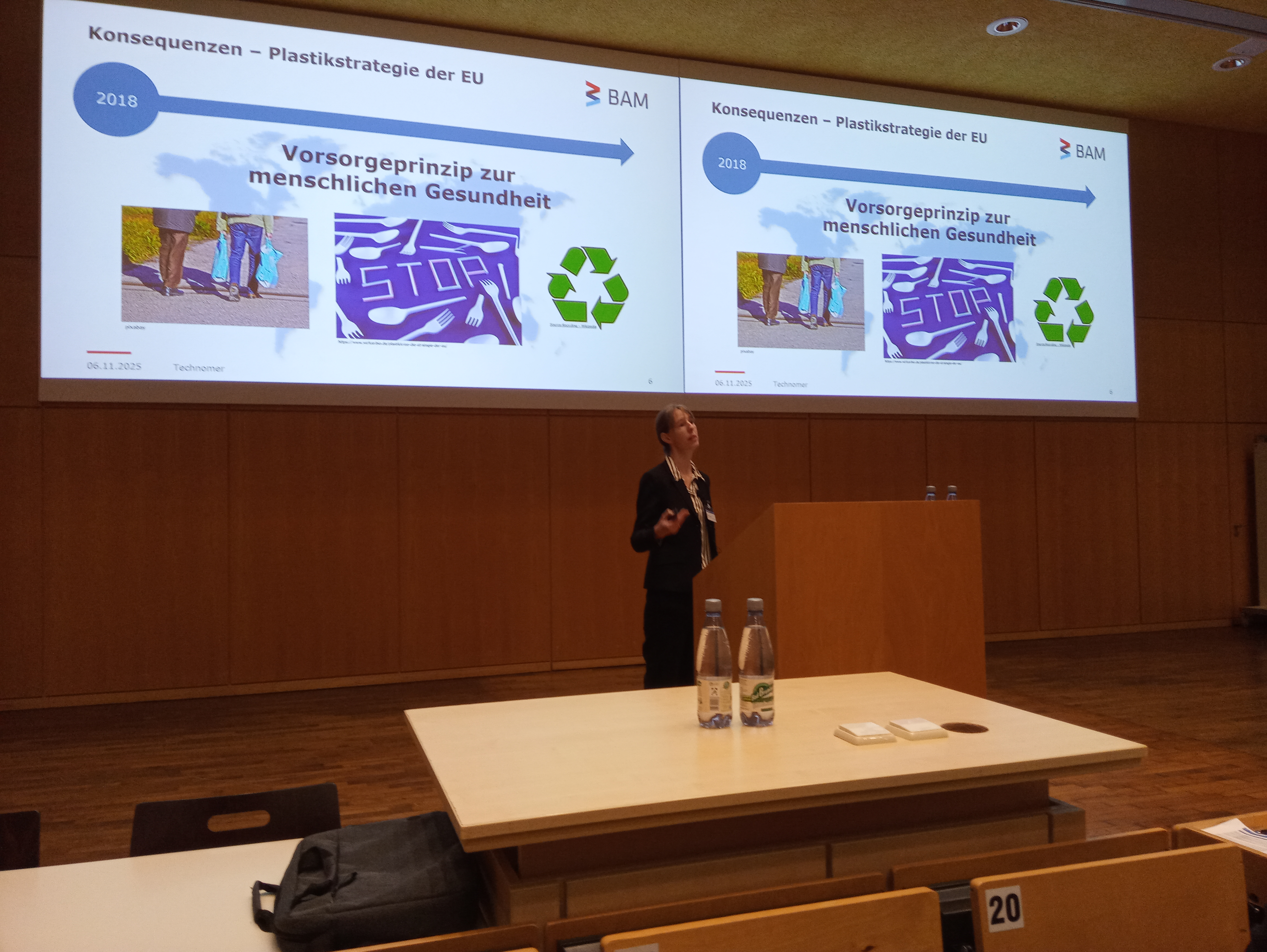 Die Plenarvorträge spiegelten die Vielfältigkeit und die aktuellen Problemstellungen der Kunststofftechnik wieder. Im ersten Vortrag ging es um die Anforderungen an Kunststoffe für die Zukunft der elektrischen Energieversorgung. Ansätze für die Lösungen für diese Herausforderungen stellte Herr Dr. Henze von der RITZ Instrument Transformers GmbH vor. Im zweiten Vortrag stellte Frau Dr. Altmann von der Bundesanstalt für Materialforschung und -prüfung (BAM) die Frage: Wessen Problem ist Mikroplastik eigentlich? und präsentierte neben dem aktuellen Stand auch die Anforderungen an die Messwerterfassung im Bereich der Mikroplastik, um die Werte einordnen zu können.