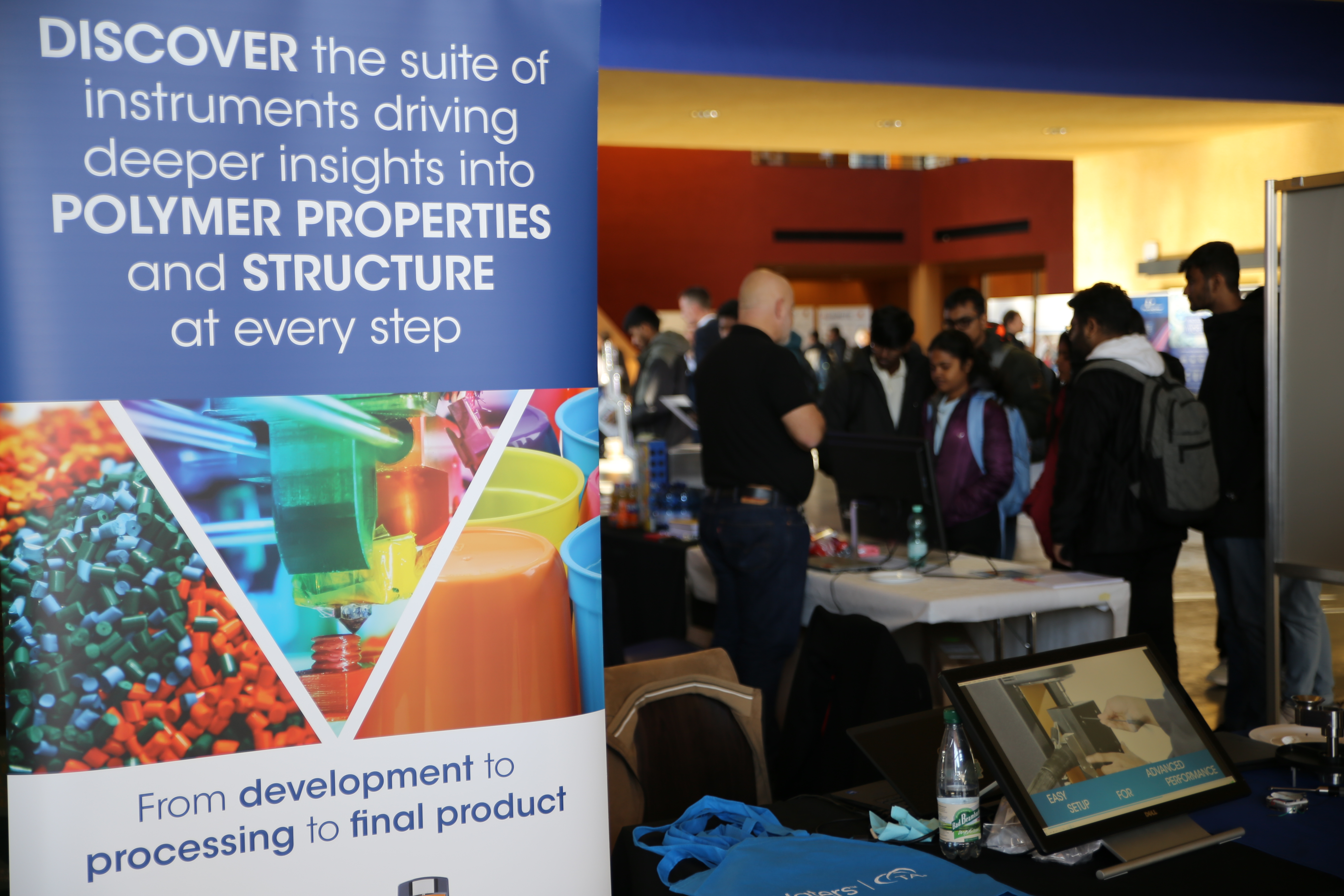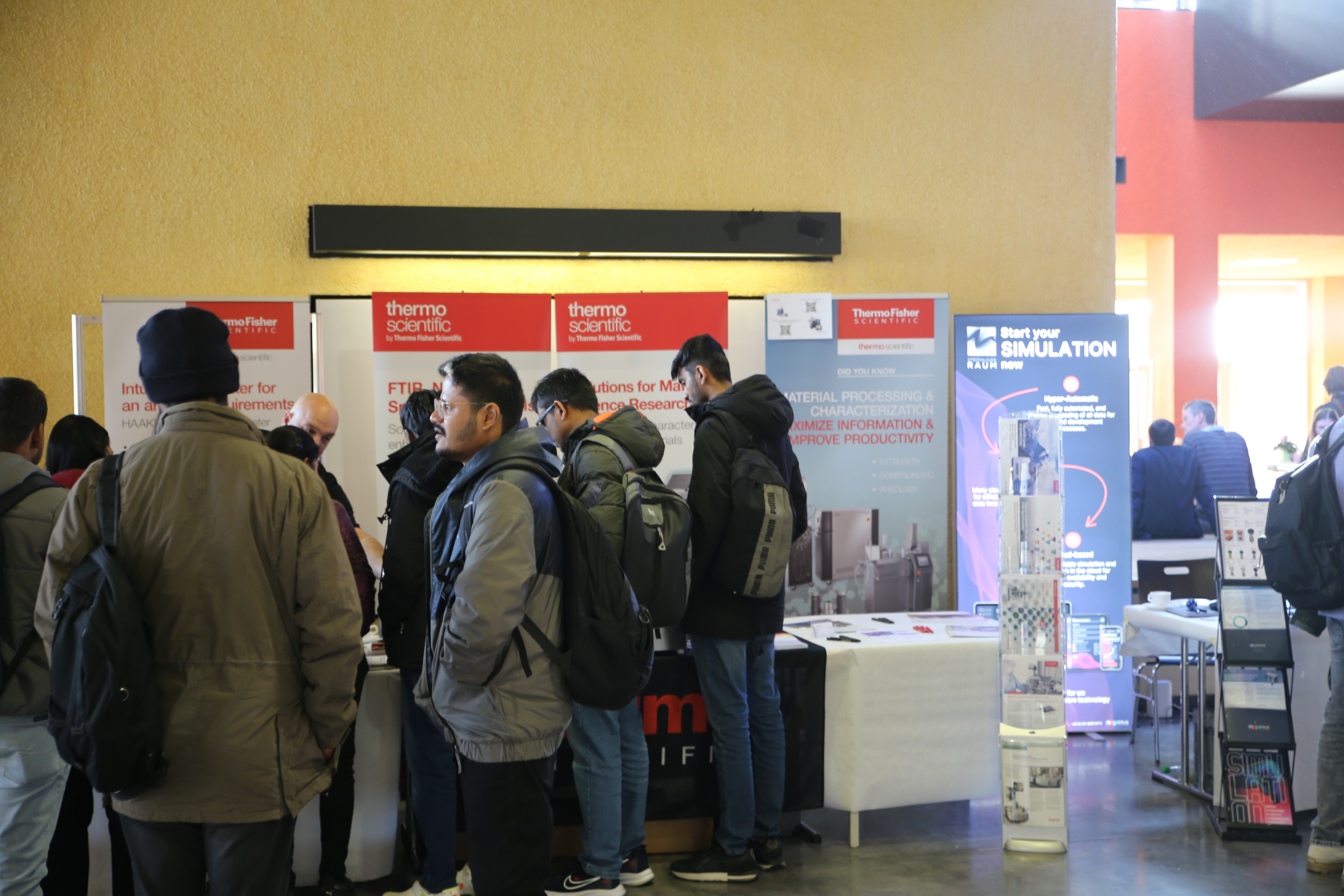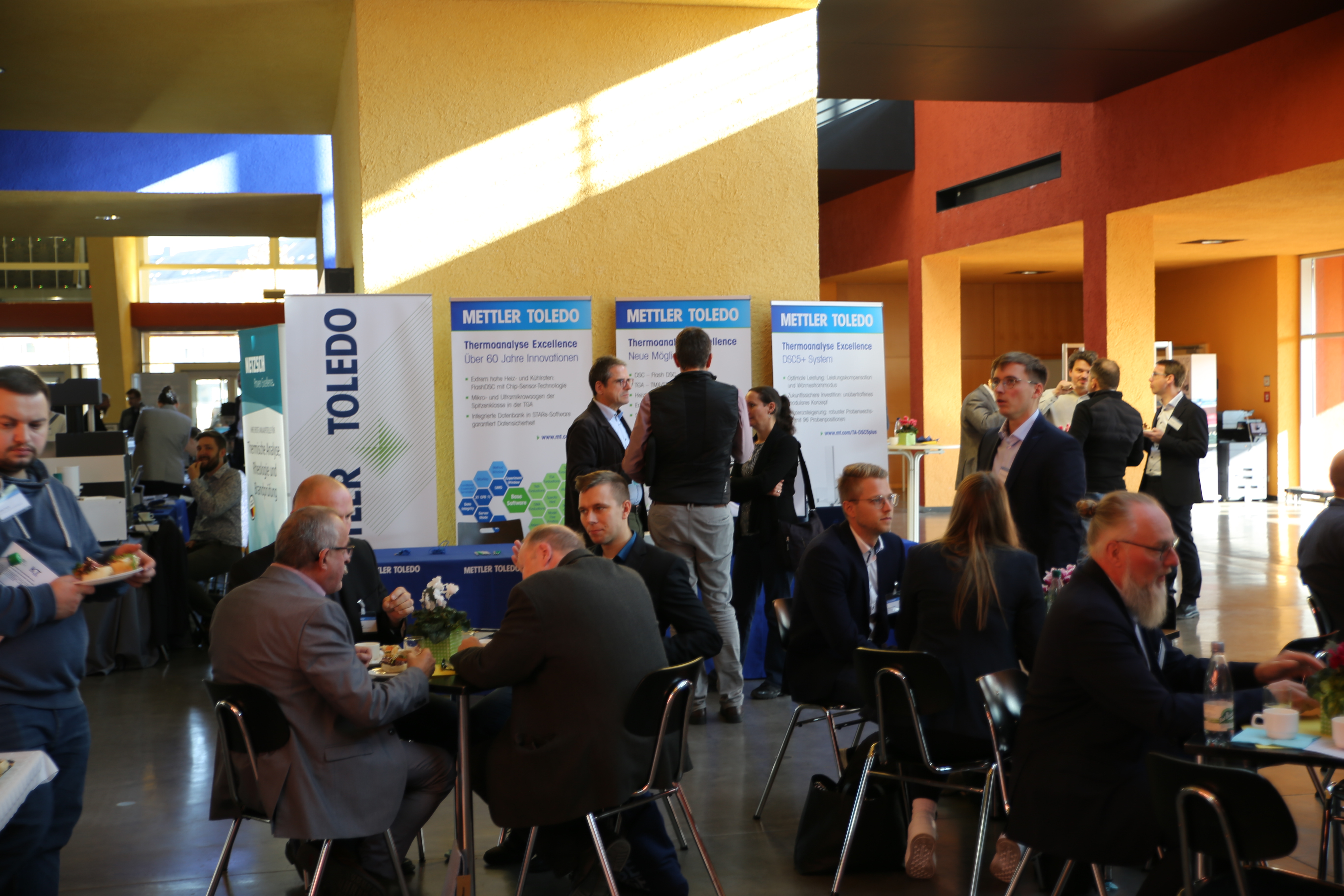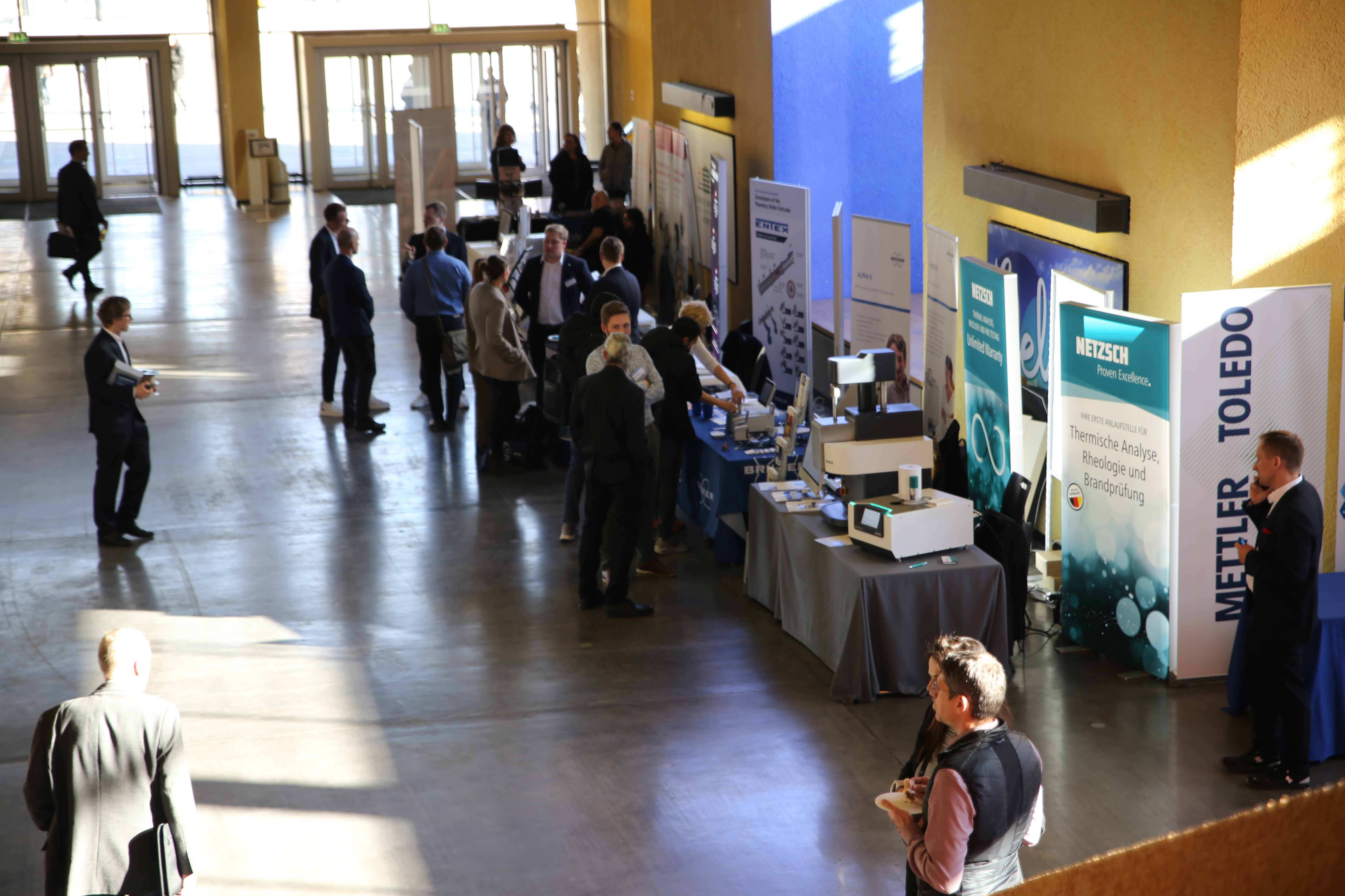 In Ergänzung zu den Vorträgen zeigte eine Ausstellung von 45 Postern aktuelle wissenschaftliche Arbeiten zu den Themenkomplexen, deren Ergebnisse während der Postersessions mit den Autorinnen und Autoren diskutiert werden konnten. Im Ausstellungsfoyer nutzten zudem 16 Firmen die Gelegenheit, ihre Angebote aus den Bereichen Kunststoffprüfung, Rohstoffe, Aufbereitungstechnik oder Peripherietechnik vorzustellen, darunter auch erstmals ein Unternehmen aus Japan.