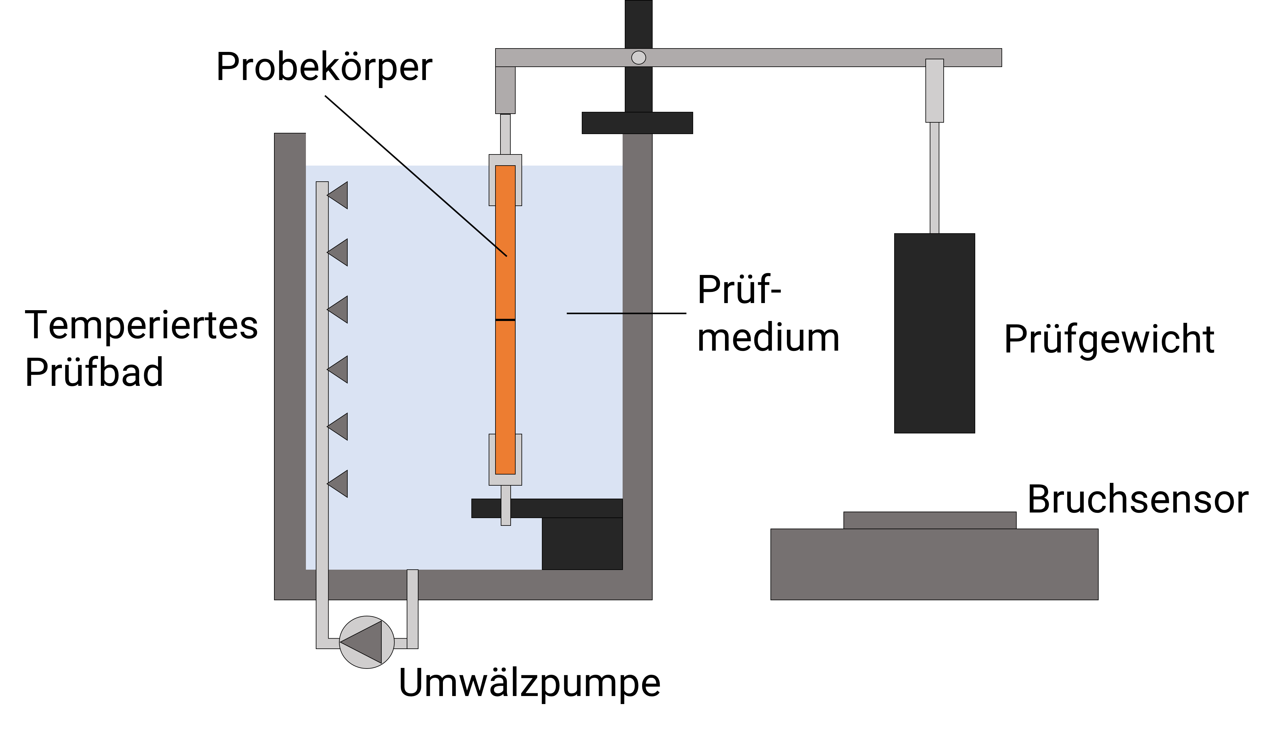 Medien-Zeitstandprüfung thermoplastischer Schweißnähte mit alternativen Netzmitteln