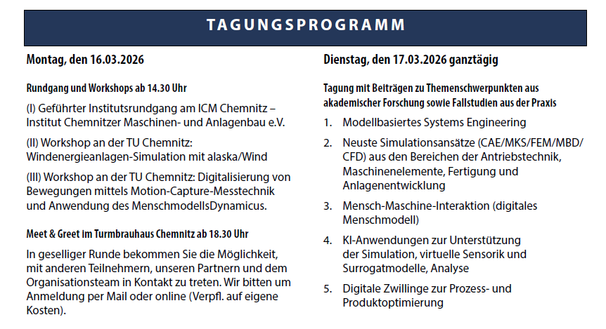 Programm | SAXSIM | Professur MHT | IFMT | Fakultät Maschinenbau | TU Chemnitz