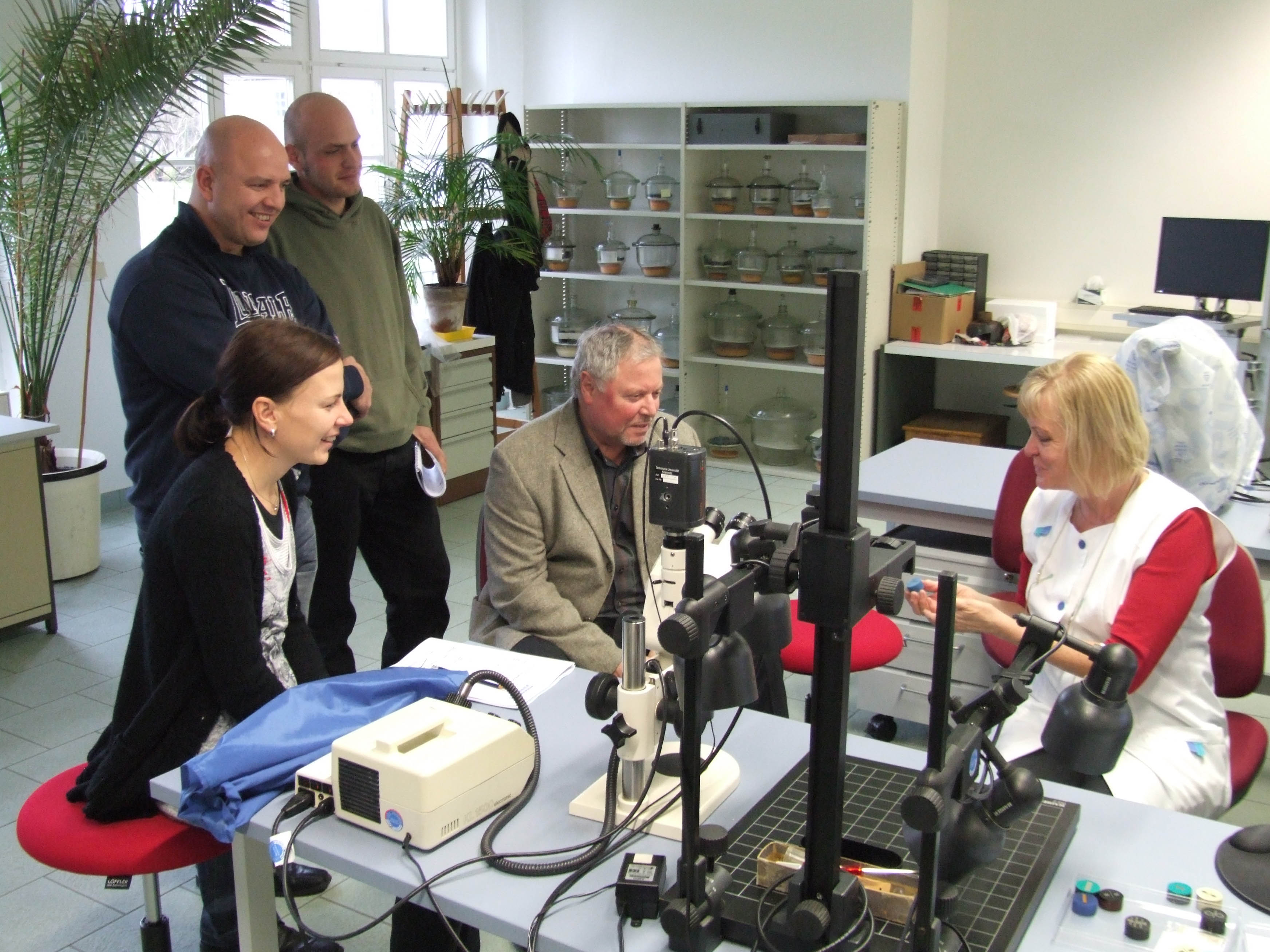 In kleinen Gruppen wurde anschließend die Praxis der Vorbehandlung, des Galvanisierens sowie der chemischen Metallabscheidung anhand ausgewählter Beispiele im Labor vertieft (Bild 2). Im einer beliebten Chemnitzer Gastronomie klang der erste Tag mit Gesprächen in lockerer Atmosphäre bei guten Speisen und würzigem Bier aus.