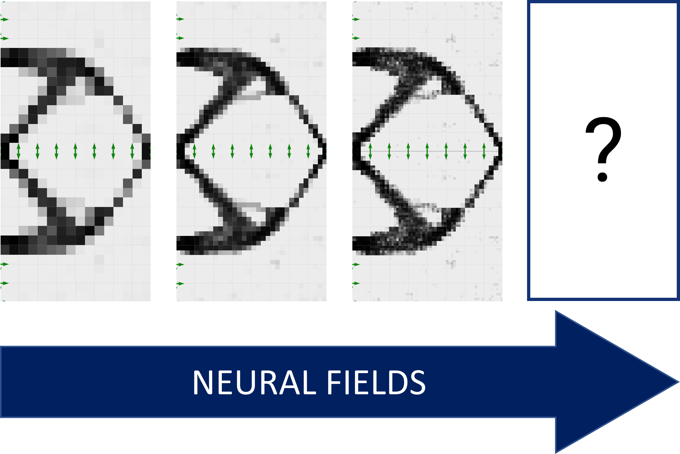24.10.2025Neural Fields are a little known type of neural network, that act akin to functions. This makes them interesting for the application in topology optimization, since they do not depend on resolution. Their application could prove to be a pivotal advancement of AI based Topology Optimization, which is inherently limited by the computational effort for either the synthesis of training data or the evaluation of generated structures with FE Analysis.