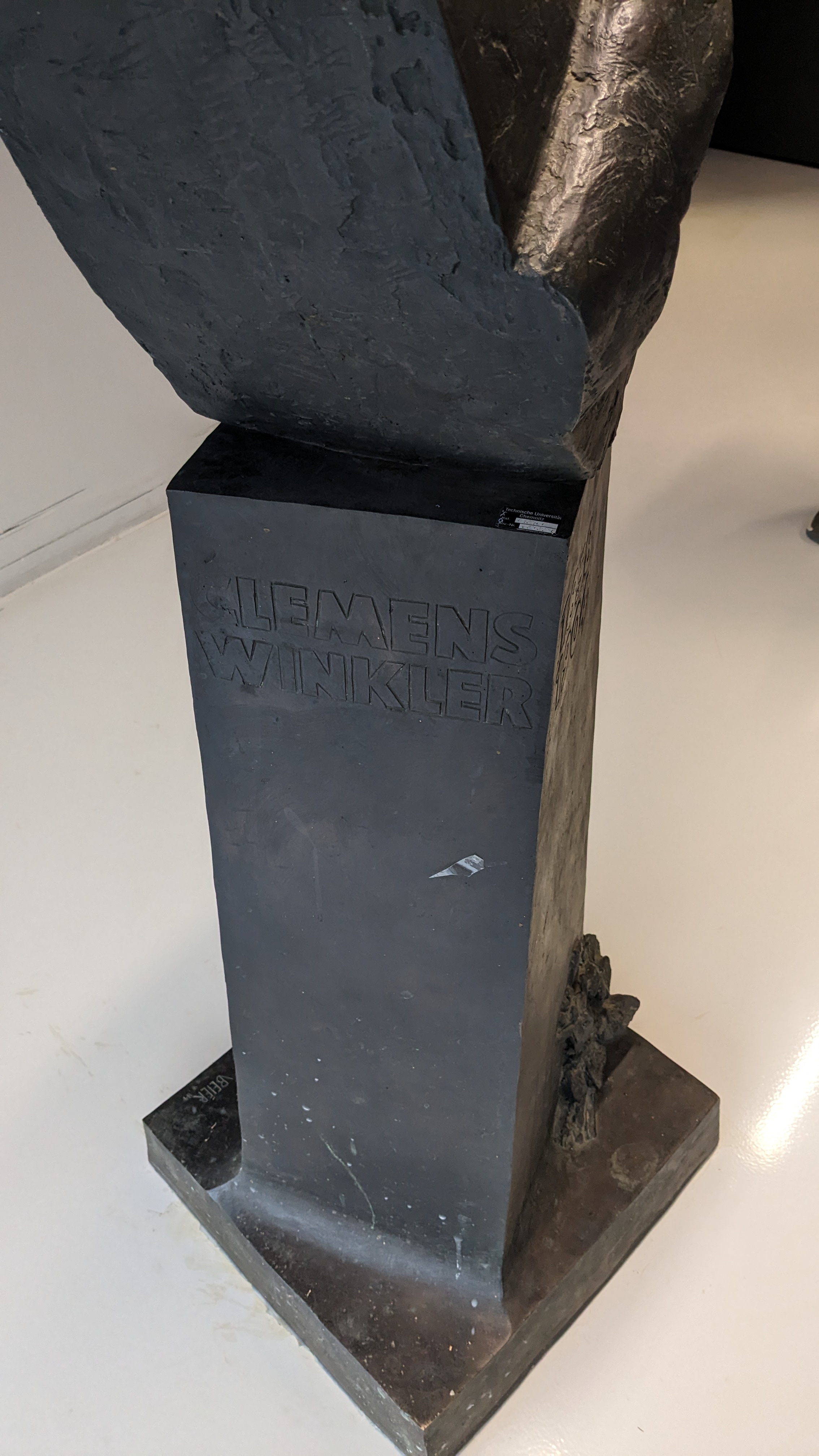 Heute befindet sich keines der Werke mehr in der Eingangshalle. Die Portraitbüste Clemens Winklers von Volker Beier steht aktuell im Flur des Weinholdbaus.