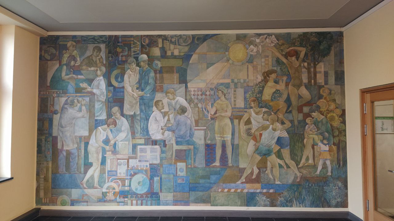 Dieses Werk befindet sich an der Straße der Nationen, im Treppenhaus des Eckgebäudes, das 1957 eingeweiht wurde. Der Chemnitzer Künstler Klaus Neubauer, der an der Hochschule für Bildende Künste in Dresden studierte, wählte im Jahr 1969 die Hochschule seiner Heimatstadt als Ausführungsort für seine Diplomarbeit. Seine Anfrage diesbezüglich bei der Hochschulleitung wurde von dieser begrüßt und er erhielt für die Ausführung des Werkes sogar 1.000 Mark, was für eine Diplomarbeit zu dieser Zeit ein beachtlicher Betrag war. Dem Künstler wurde bei der Gestaltung freie Hand gelassen. Für die Darstellung des studentischen Lebens fertigte er an der Hochschule Skizzen von Studenten in typischen Lehr- oder Forschungssituationen an. Im spezifischen Stil des Künstlers verarbeitete Neubauer für die Zeit typische Bildtopoi. Obwohl das Wandbild von Studierenden und Lehrenden positiv angenommen wurde, fand sich in der Hochschulzeitung im Nachgang auch Kritik eines FDJ-Mitglieds der Kulturredaktion: „Bedauerlicherweise wurden die Entwürfe zu diesem Wandbild nur mit einem kleinen Kreis von Studenten und Angehörigen des Lehrkörpers diskutiert. Wenn es sich hier auch nicht um eine Auftragsarbeit der Hochschule handelte, ist es doch zu bedauern, daß eine Möglichkeit zur Entwicklung des geistig-kulturellen Lebens verschenkt und ein Prinzip unserer sozialistischen Kulturpolitik nicht eingehalten wurde: alle künstlerischen Werke mit denen zu beraten, für die sie bestimmt sind“. Die schnelle Zusage für das Werk und zu dessen freier Gestaltung wurde vielleicht ohne das Einverständnis politischer Instanzen der Hochschule gegeben
