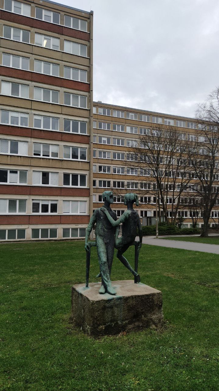 In der „Technisch-ökonomischen Zielstellung zum Investitionsvorhaben zur Erweiterung der TH Karl-Marx-Stadt (TÖZ)“ 1966 war neben dem Bau einer neuen Mensa und später Fakultäts-, Hörsaal- und Hallengebäuden auch 5 Internatsgebäude vorgesehen. 1967 wurde in der Hochschulzeitung über die Grundsteinlegung für zwei der fünf neuen Wohnheimkomplexe berichtet. Die achtgeschossigen Baukörper konnten bis 1969 der Nutzung übergeben werden. Für das Internat an der Reichenhainer Straße 39/41 schuf der Freiberger Künstler Gottfried Kohl im gleichen Jahr eine Bronzeplastik. Sie zeigt das Motiv eines einander zugewandt sitzenden Studentenpaares. Der Künstler schuf insgesamt drei Werke für die Hochschule.