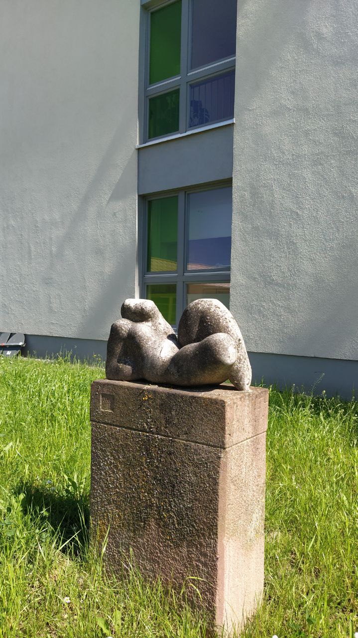 Im Jahr 1983 entstand die Skulptur „Ruhende“ von Werner Rauschhardt. Sie ist bis heute vor der ehemaligen Poliklinik der Hochschule am Thüringer Weg 11 zu finden. Die Poliklinik, die 1970 als eigenes Gebäude geplant war, wurde letztendlich 1979 im ehemaligen Wohnheimgebäude eröffnet. Laut den Akten im Universitätsarchiv war das Kunstwerk kein Auftragswerk der Hochschule, sondern eine Schenkung des Bauwesens an die Poliklinik. Da die medizinische Einrichtung seit 1983 auch als arbeitshygienische Beratungsstelle des Bauwesens fungierte, ist diese Verbindung denkbar. Margitta Rauschhardt erinnerte sich, dass ihr damaliger Ehepartner die Skulptur 1983 für ein Symposium in Karl-Marx-Stadt anfertigte. In diesem Jahr fand im Küchwald ein Bildhauersymposium statt, bei dem Herr Rauschhardt als Teilnehmer aufgeführt war. Das Symposium war jedoch eine Maßnahme zur Fremdfinanzierung von Kunst im Neubaugebiet, da die entstandenen Skulpturen in das entstehende Wohngebiet Fritz Heckert eingesetzt wurden. Diese Praxis war in den 1980er Jahren in der DDR üblich, wenn Gesellschaftsbauten und die damit verbundenen Gelder für Kunstleistungen in Neubaugebieten ausblieben. Wie genau also das Werk von Werner Rauschhardt an die Poliklinik der Hochschule gelangte, bleibt unklar.