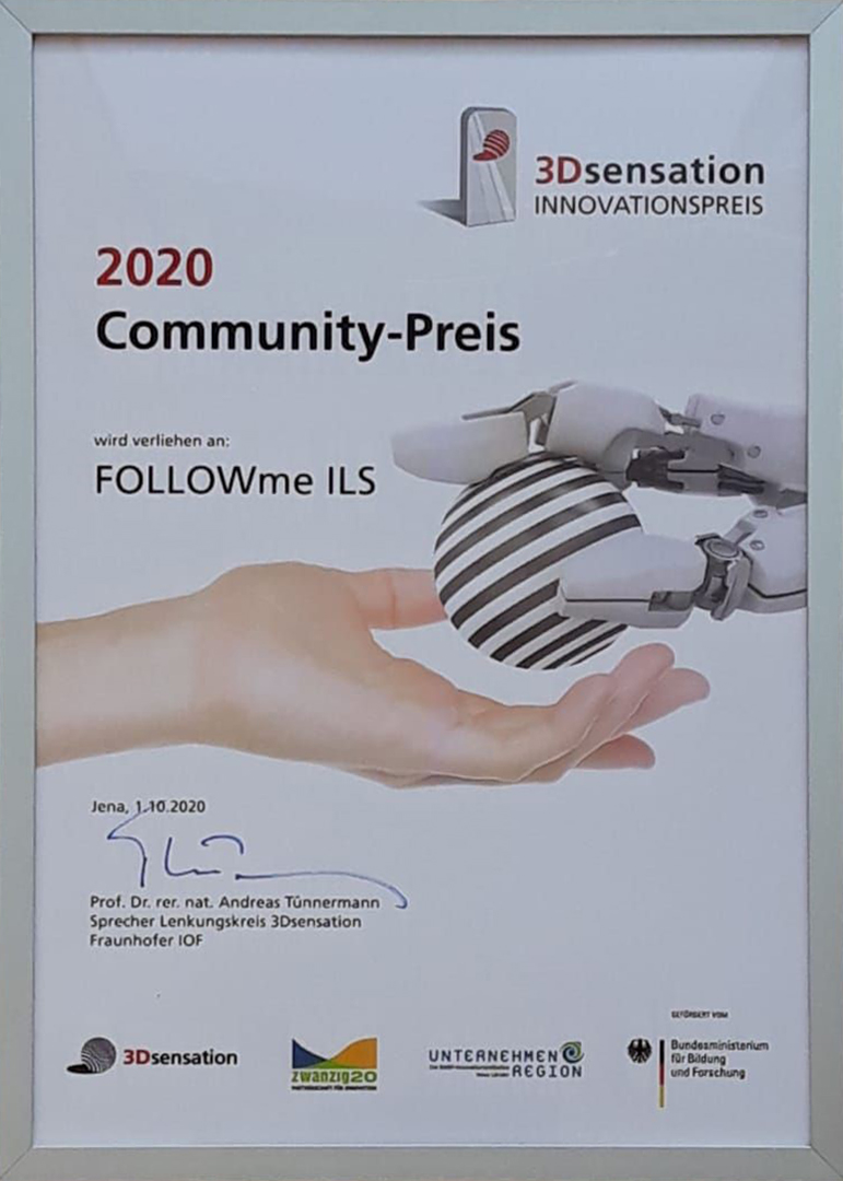 Nach einer Abstimmung in der Community der Forschungsallianz „3Dsensation“ wurde der 3Dsensation Innovationspreis am 10. November 2020 im Rahmen der Mitgliederversammlung an das Projektkonsortium vergeben. Coronabedingt erhielten die Preisträger ihre Urkunde samt Sekt zum Anstoßen per Post. Der Preis beinhaltet die professionelle Produktion eines Imagefilms zum Forschungsthema sowie eine Marketingbegleitung im Wert von 8.000 Euro. Damit erhoffen wir uns, die Ergebnisse zeitnah in die Praxis transferieren zu können. Der Film wird in Kürze hier für Sie auf dieser Seite verfügbar sein.