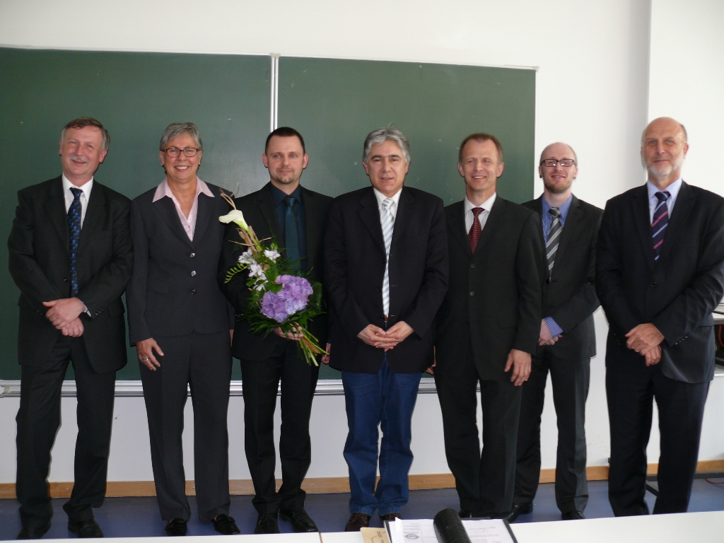 Am 09.01.2013 verteidigte Herr Dominik Rohrmus, Mitarbeiter der Siemens AG, erfolgreich seine Dissertation zum Thema "Adaptive invariante Merkmale für die Texturklassifikation". Seine Arbeit befasste sich mit der Entwicklung einer Methode zur Extraktion und Klassifikation von lageinvarianten Texturmerkmalen aus digitalen Grauwertkamerabildern. Diese Methode dient zur variantenflexiblen, reproduzierbaren und schnellen Texturanalyse bei der automatischen Qualitätskontrolle von der Oberflächengüte industriell gefertigter Produkte.
