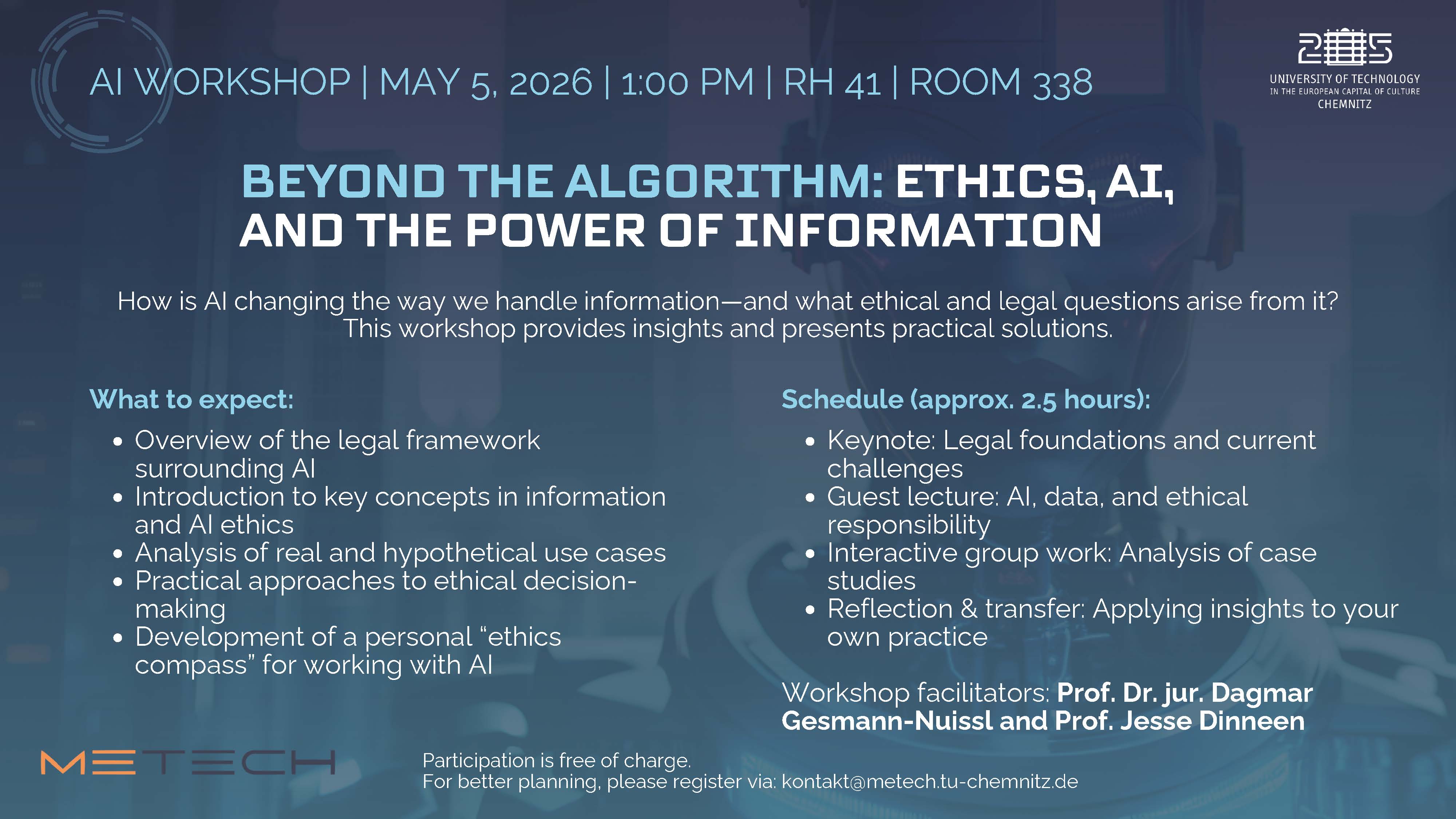 05.05.2026 | ab 13:00 Uhr | Einladung zum Workshop: BEYOND THE ALGORITHM: ETHICS, AI AND THE POWER OF INFORMATION