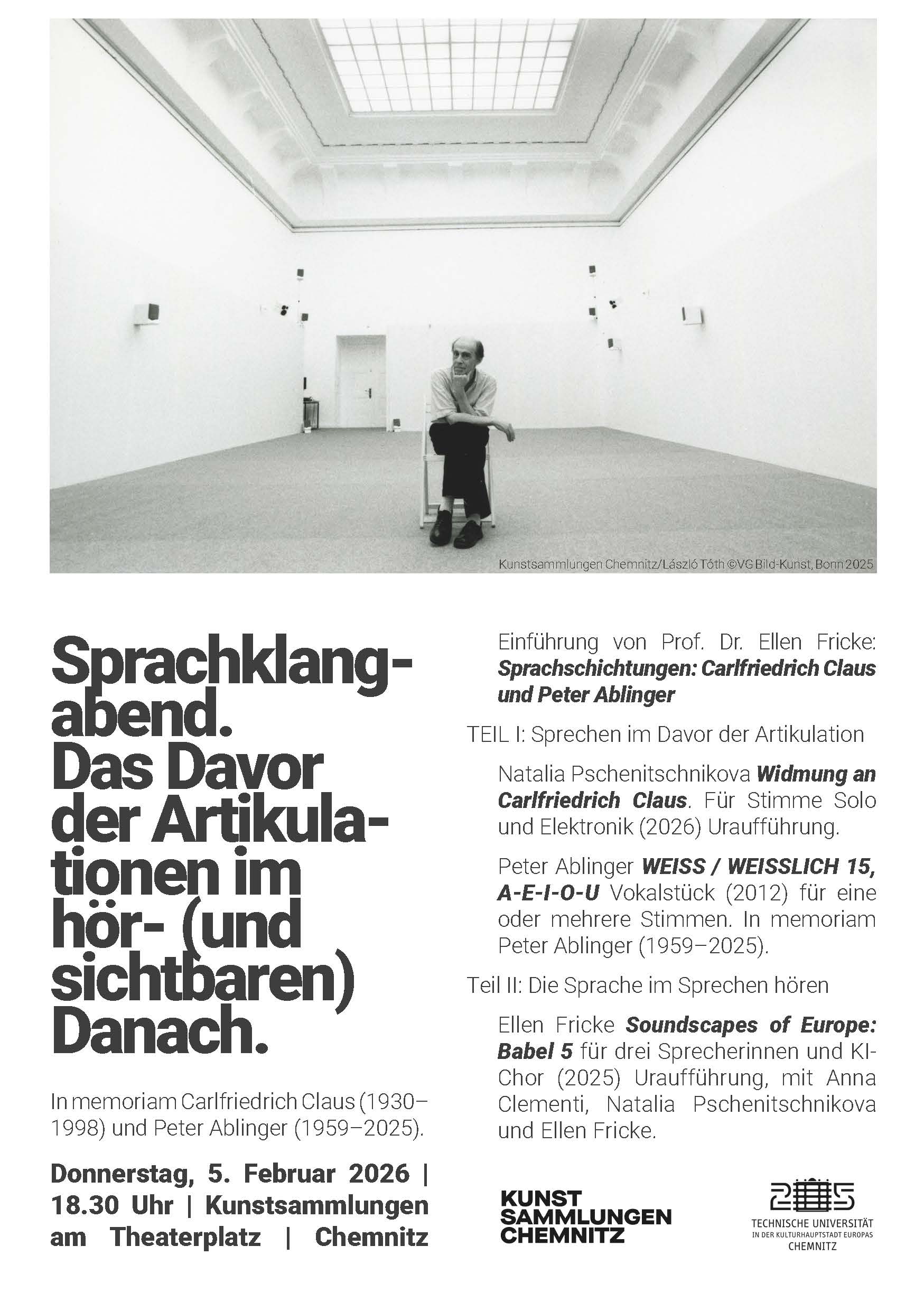 - Einführung von Prof. Dr. Ellen Fricke: Sprachschichtungen: Carlfriedrich Claus und Peter Ablinger
