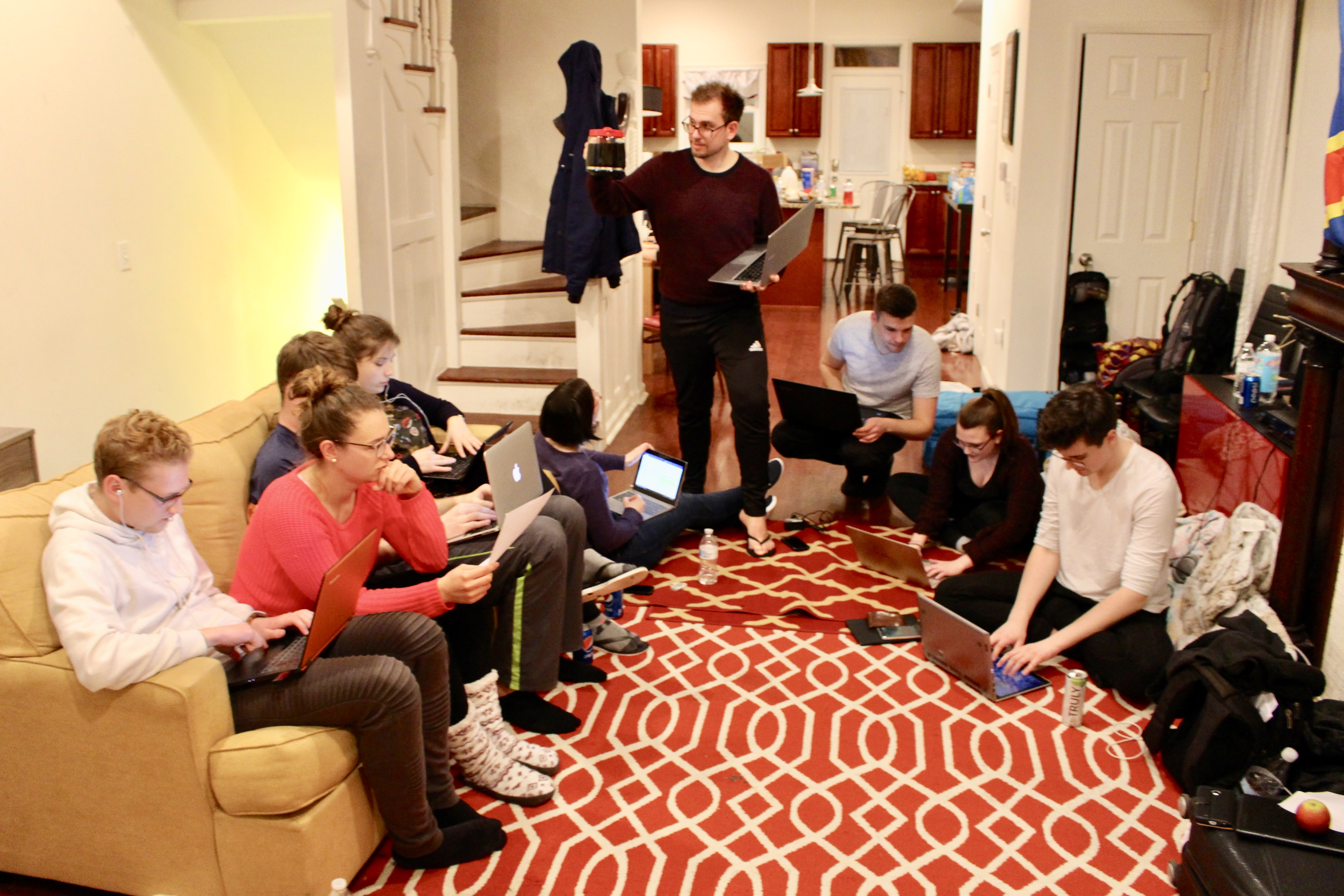 Der erste gemeinsame Abend in Washington beginnt, wie auch schon die Weihnachtsfeier, der Länderabend und die EfMUN: Mit Pizza. Die meisten sind gemeinsam am Nachmittag mit dem Bus aus New York angereist und haben, nachdem sie eine Weile umherirren mussten, um das Hostel zu finden, gleich ein paar Pizzen für den Auftakt geholt. Nach und nach treffen auch die Übrigen ein und so füllt sich die Küche des Hostels schnell.