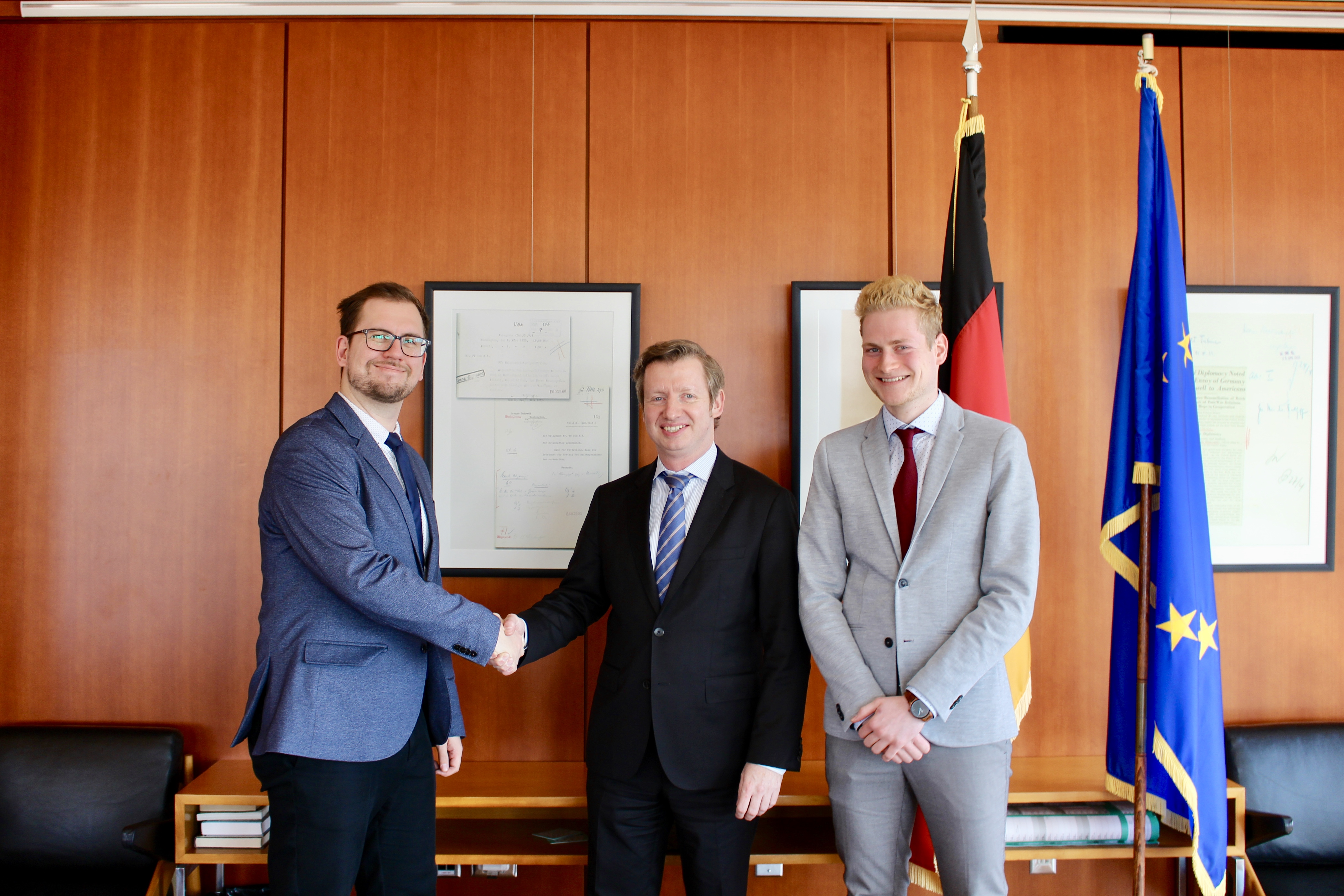 (Foto privat: Besuch in der German Embassy in Washington (Stephan, Herr Jetzlsperger, Timon v.l.n.r.))