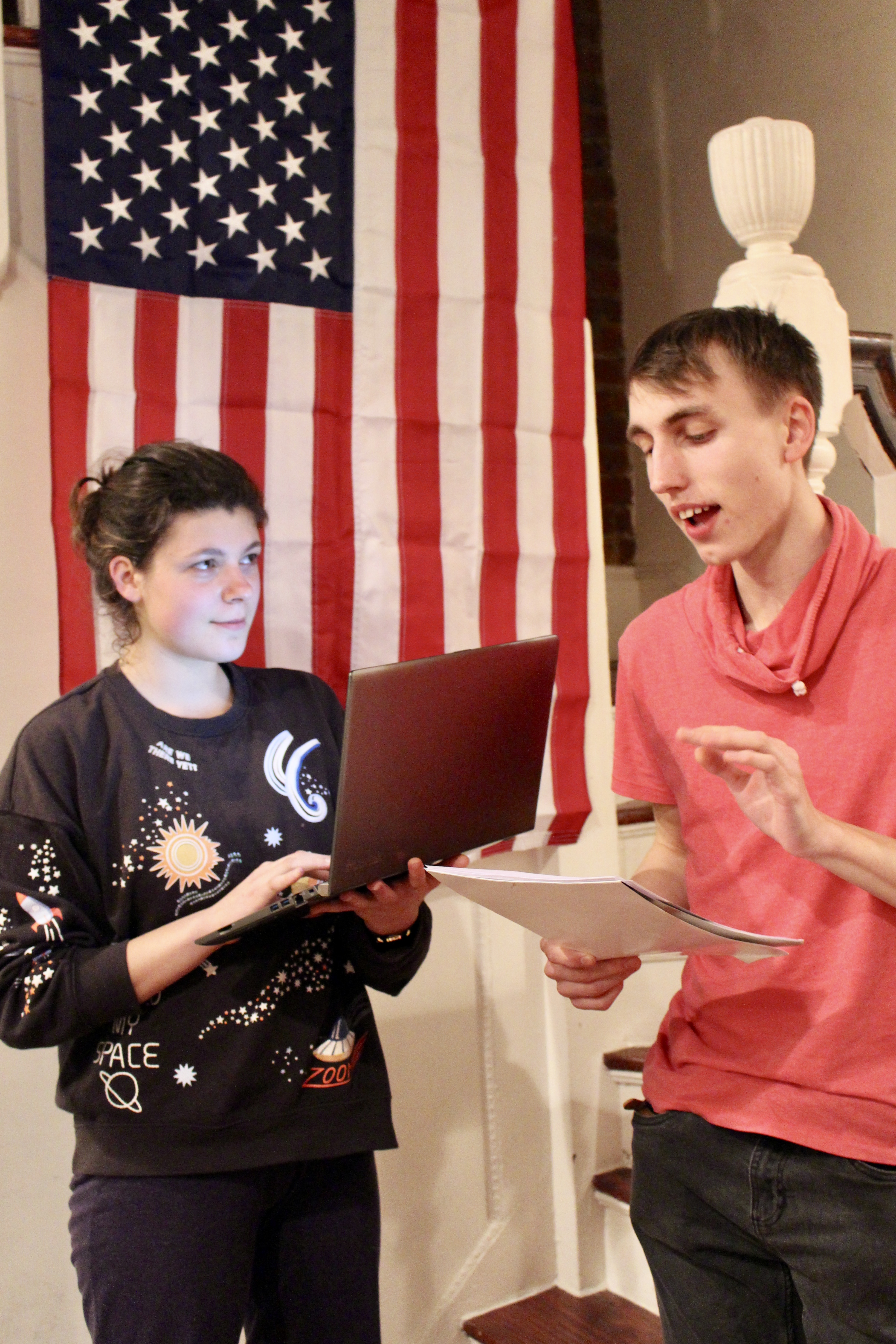 (Foto privat: Speeches training für die IOM (l.) Sophie und (r.) Johannes)