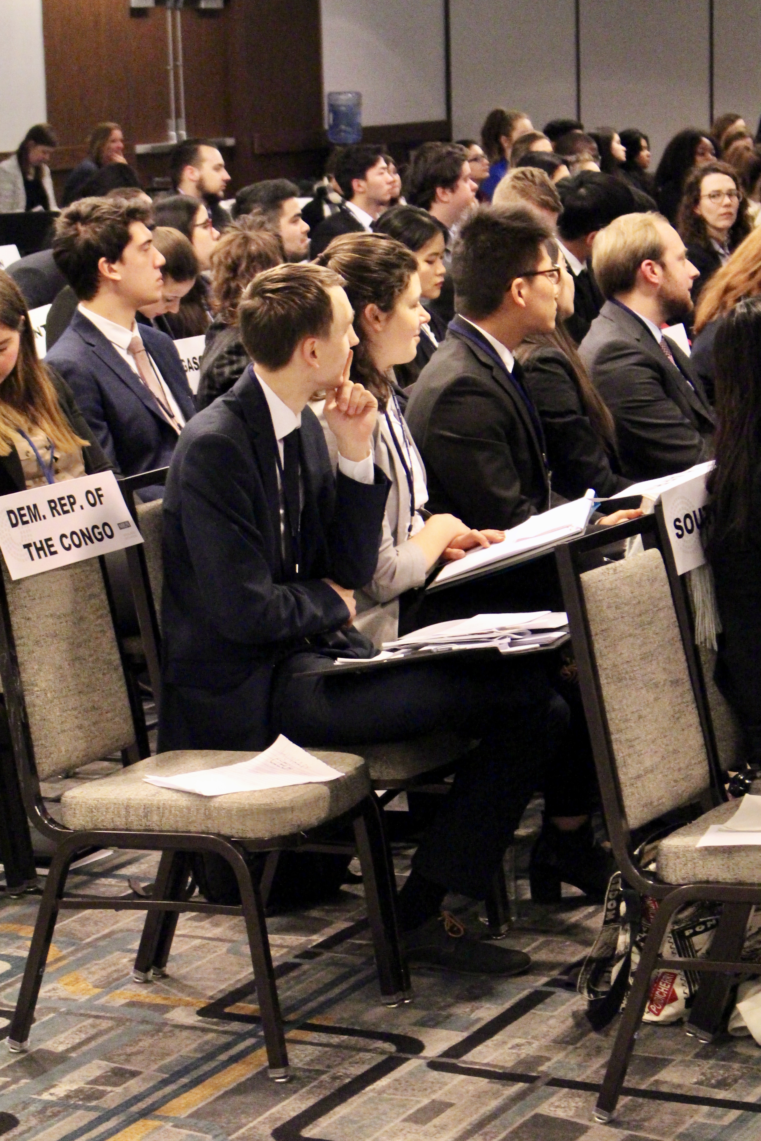 Im 1. Komitee der Generalversammlung (GA1) konnten Stephan und Nicolas insgesamt 2 Sätze zum Thema „Bekämpfung von Terroristen“ einbringen. Insgesamt wurden in diesem Komitee 5 von 6 Resolutionen verabschiedet. GA2, besetzt von Marie-Therese und Thomas konnte insgesamt 12 Sätze in 3 verschiedene Resolutionen einbringen. Eine dieser Resolutionen wurde per Akklamation (ohne Gegenstimme) angenommen. Die verschiedenen Komitees der Generalversammlungen sind dafür bekannt, dass sie dies versuchen. Besonders viele Draft Resolutionen gab es im GA3, schlussendlich wurden alle 14 akzeptiert, wovon 2 Lösungsvorschläge der DRC enthielten. Zum ersten Mal in der Geschichte von NMUN wurde auch die GA5 simuliert, Michelle und Timon konnten nach anfänglichen Schwierigkeiten an 2 Resolutionen ihre Mitarbeit vorweisen. Von insgesamt 5 Resolutionen wurden 3 per Akklamation angenommen. Doch auch unser Einzelkämpfer Maroš konnte in CND 8 Vorschläge umsetzen und sich gegen andere Mitstreiter kompetent durchsetzen. Unsere Delegation in IOM, mit Sophie und Johannes konnte ihre Vorschläge ohne Gegenstimmen durchsetzen. In 12 weiteren Drafts konnten ebenfalls Ideen verarbeitet werden. Aber auch UNEA konnten 4 Lösungen in insgesamt 7 Resolutionen verarbeiten. In der Organisation der Chemiewaffenbekämpfung (OPCW) wurden letztlich 8 Resolutionen verabschiedet, die sich v. a. mit der Kontrolle der über Grenzen gehandelte Chemikalien und die Einbindung von Akteuren aus der Chemieindustrie beschäftigten. In den insgesamt 14 Resolutionen wurden zwei Lösungsvorschläge der Demokratischen Republik Kongo eingearbeitet.