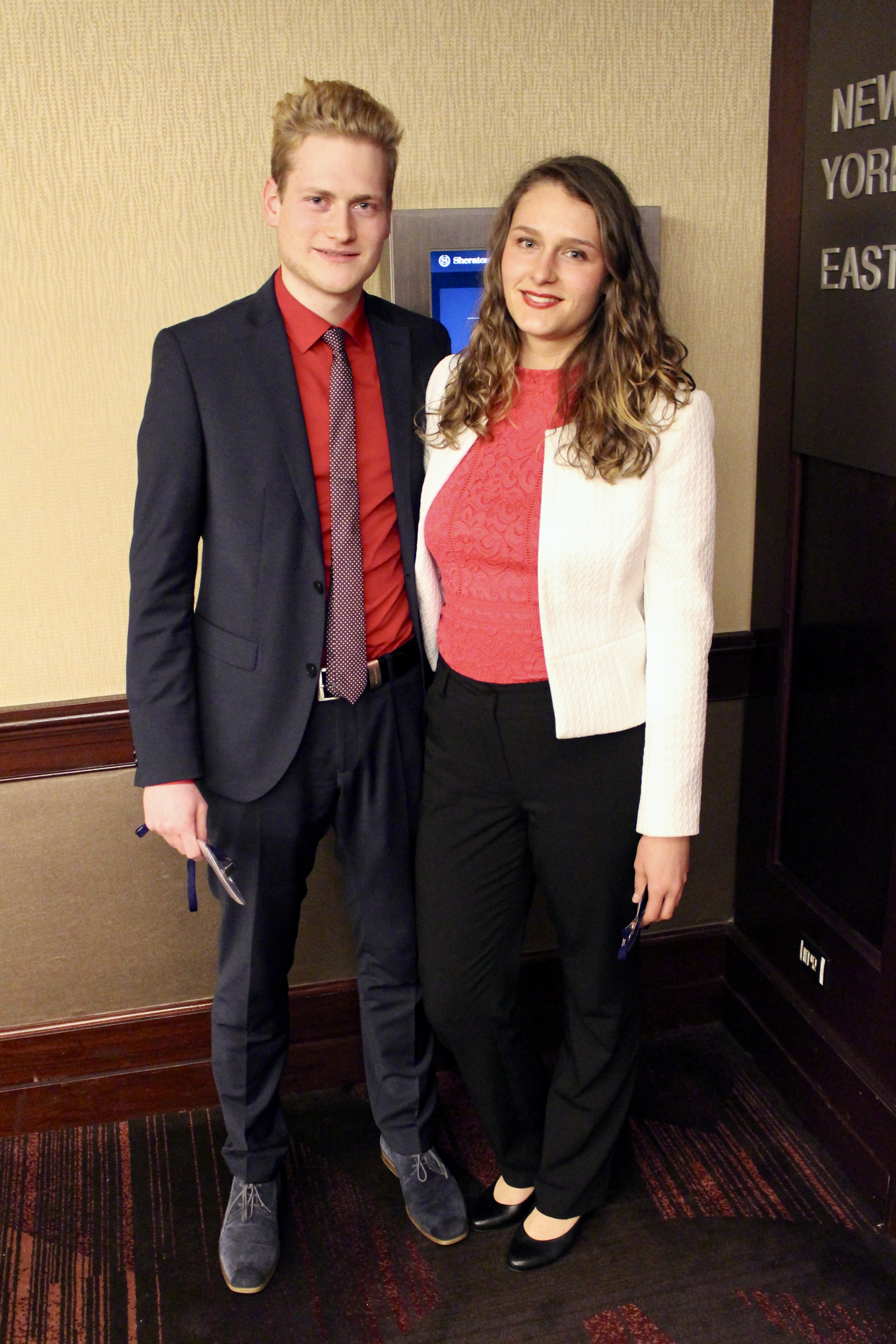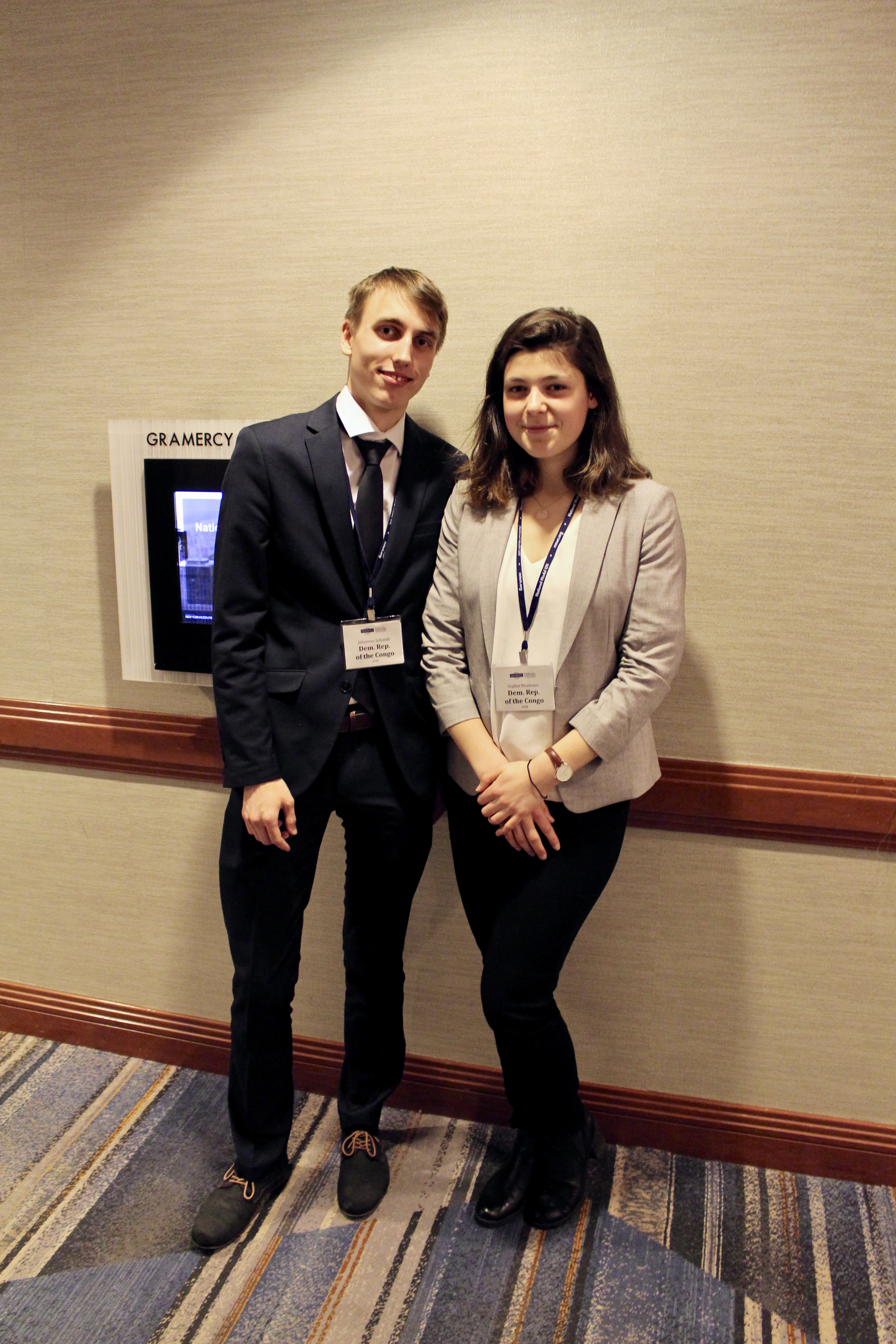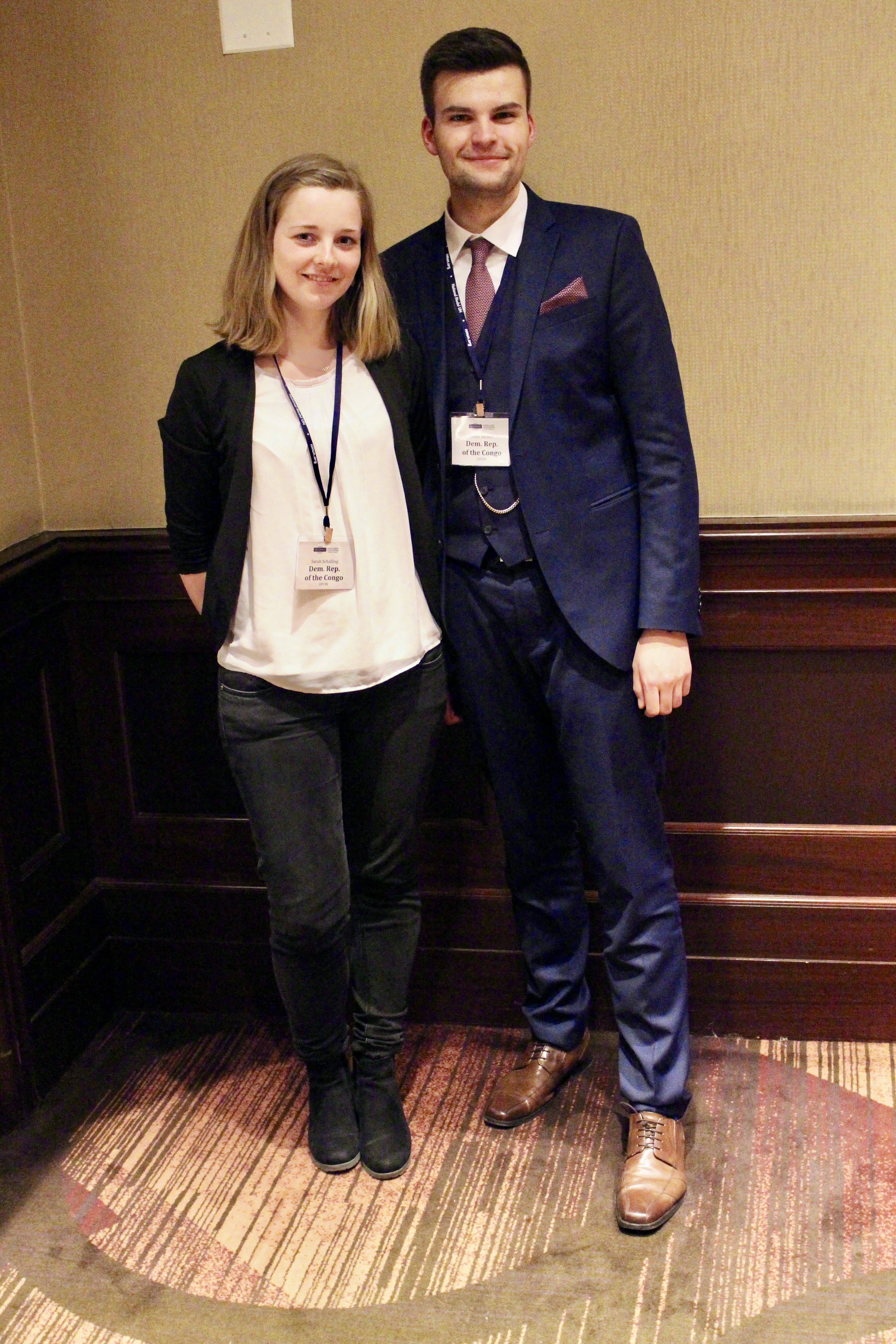 (Foto privat: Michelle (l.) und Timon (r.) vertreten die Demokratische Republik Kongo in der GA5 bei NMUN)