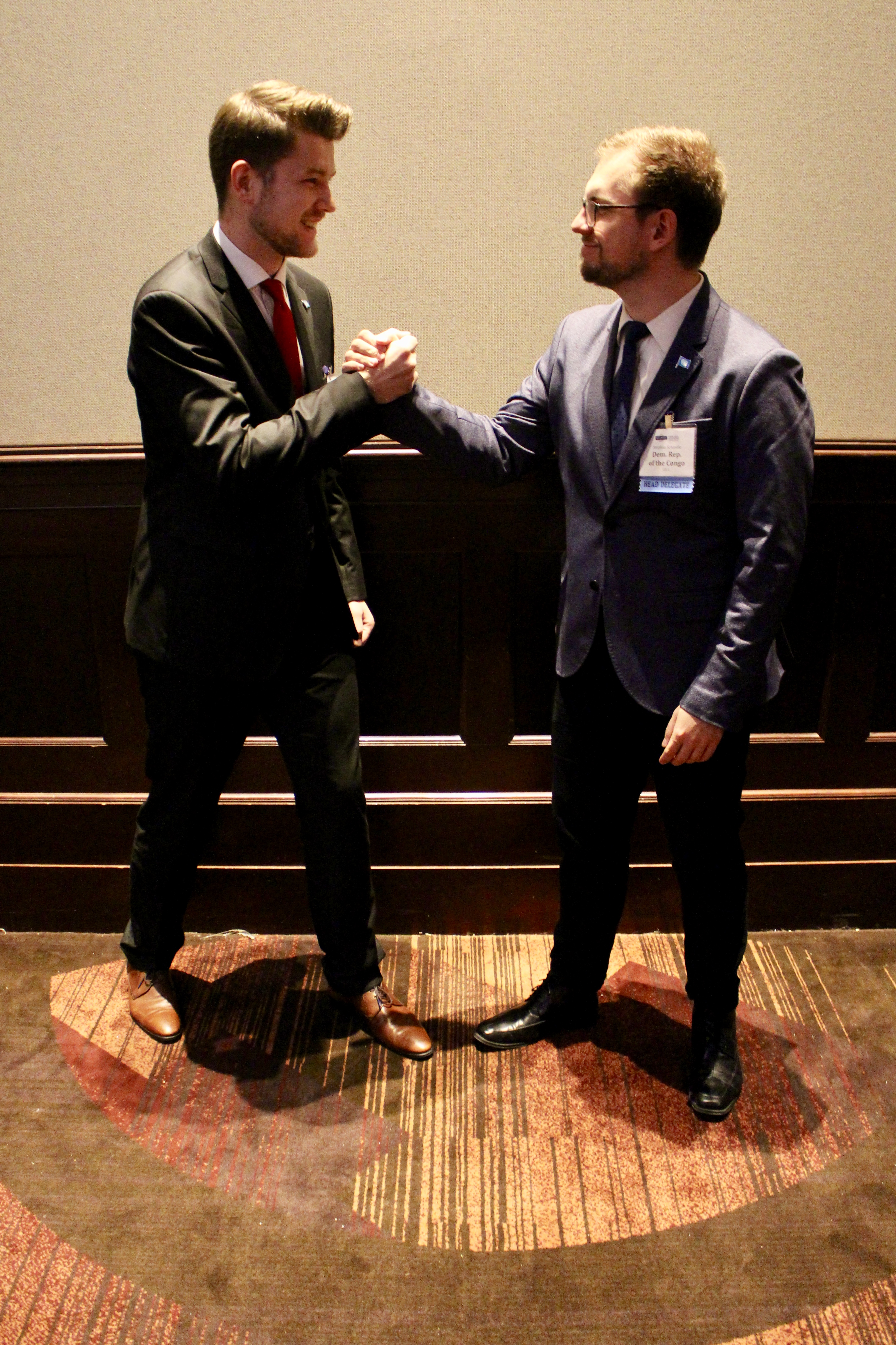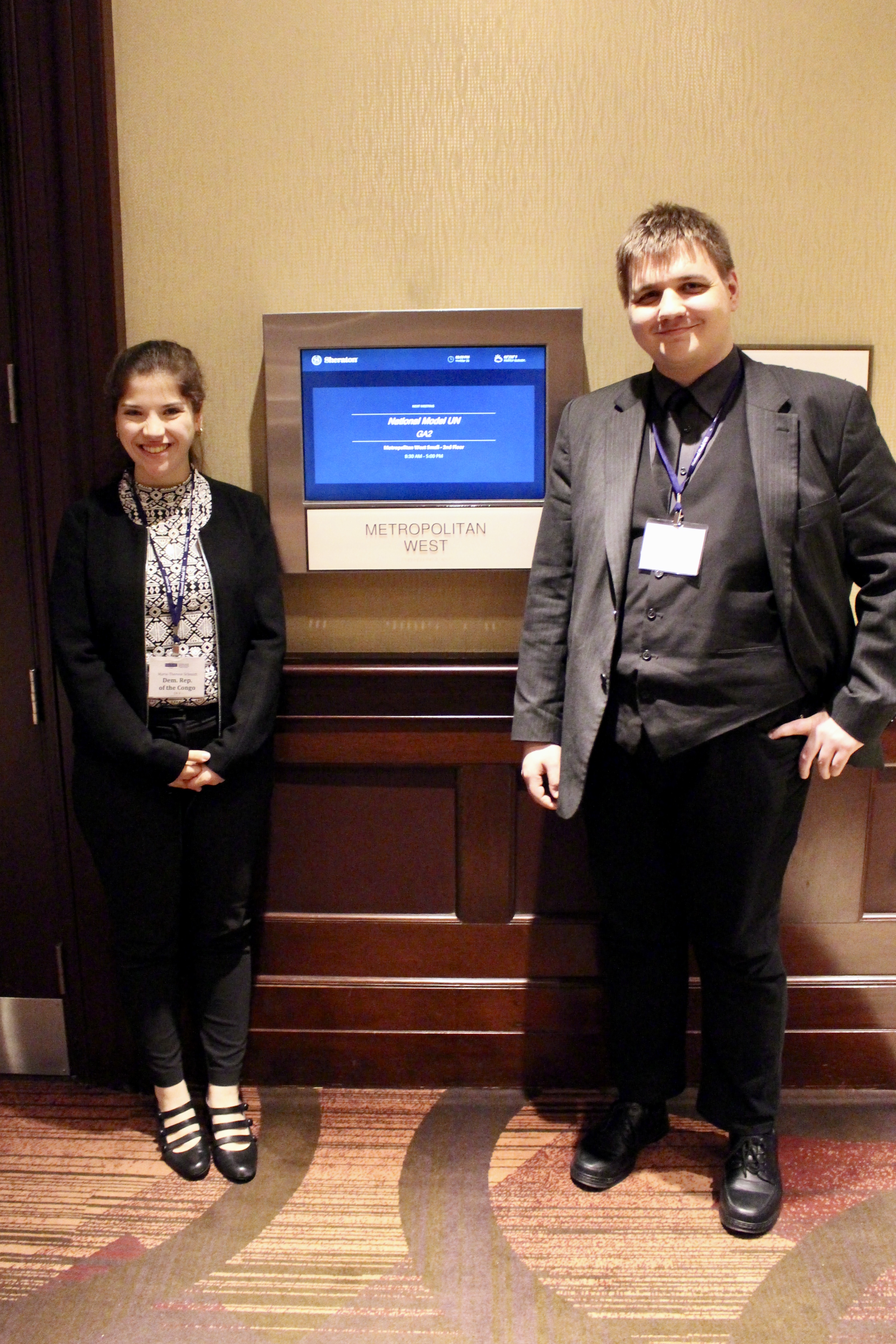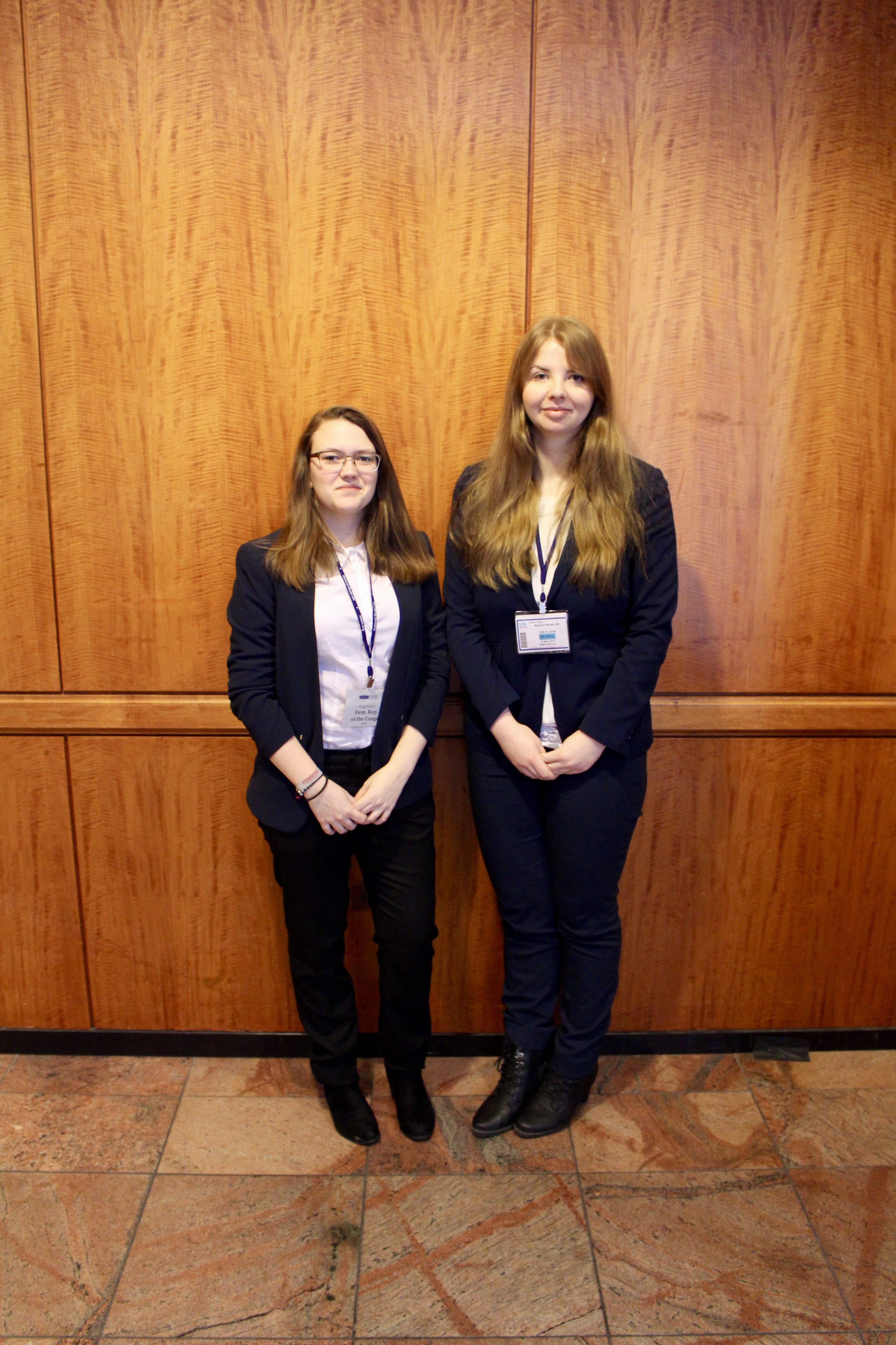 (Foto privat: Michelle (l.) und Timon (r.) vertreten die Demokratische Republik Kongo in der GA5 bei NMUN)