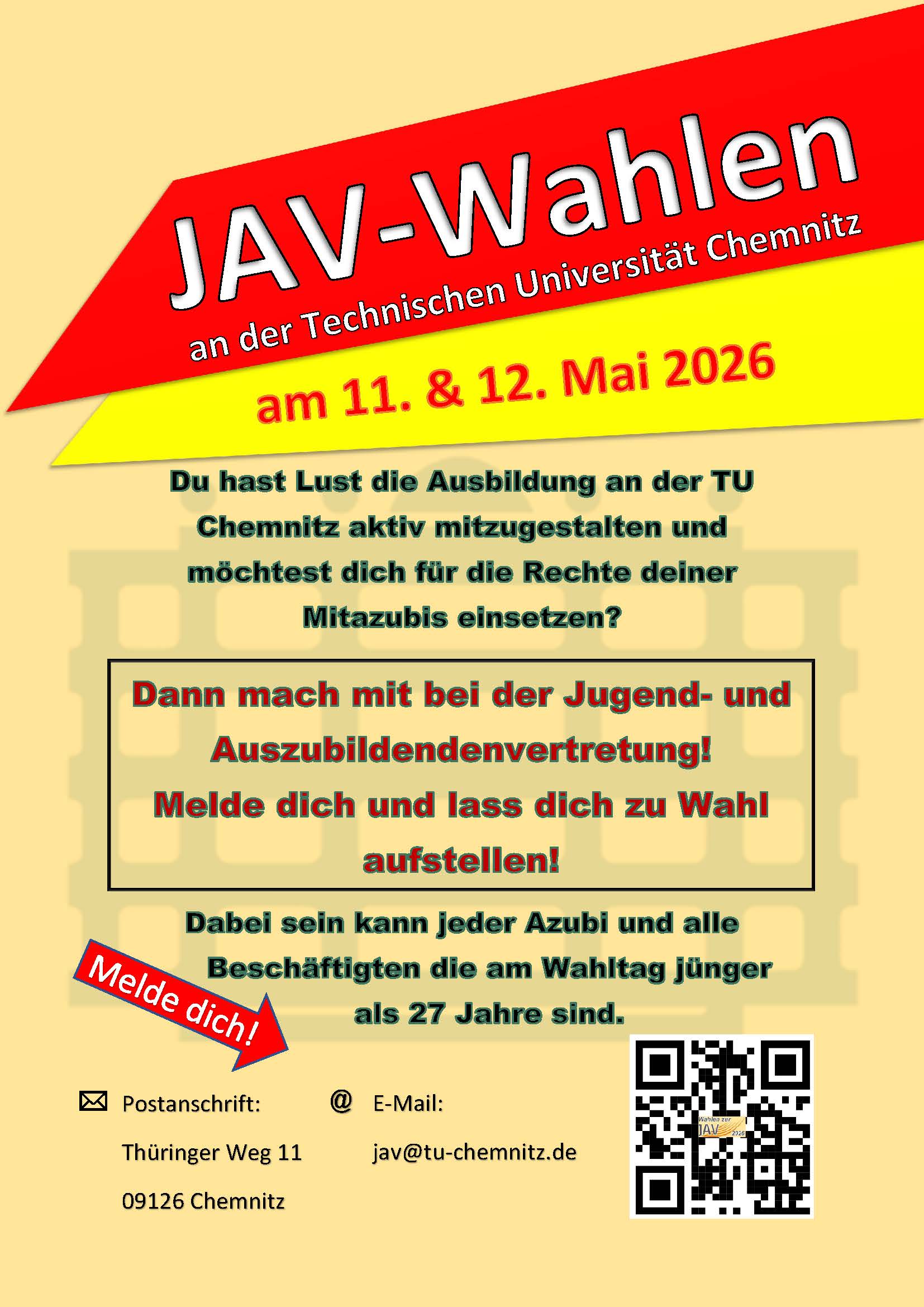 Wir begrüßen euch auf den Internetseiten der Jugend- und Auszubildendenvertretung (JAV) der TU Chemnitz.