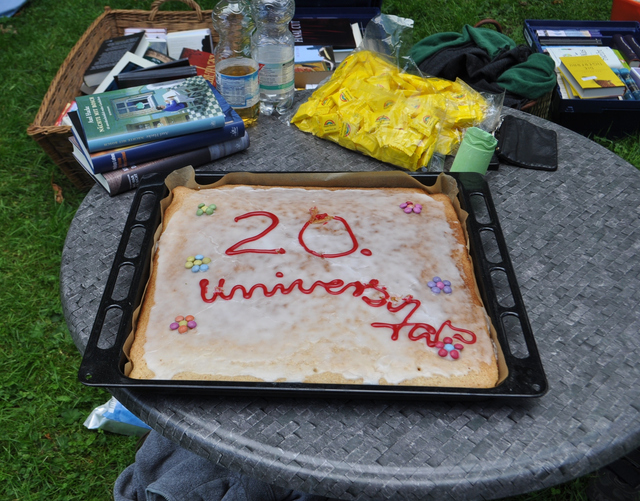 Was vergessen? Ach ja – Feiern! 20 Jahre Universitas Buchhandlung (+ 176 Jahre TU + 6 Jahre poetbewegt + 3 Jahre Flanierlesen), also summasummarum wenigstens 205 gute Gründe dabei zu sein.