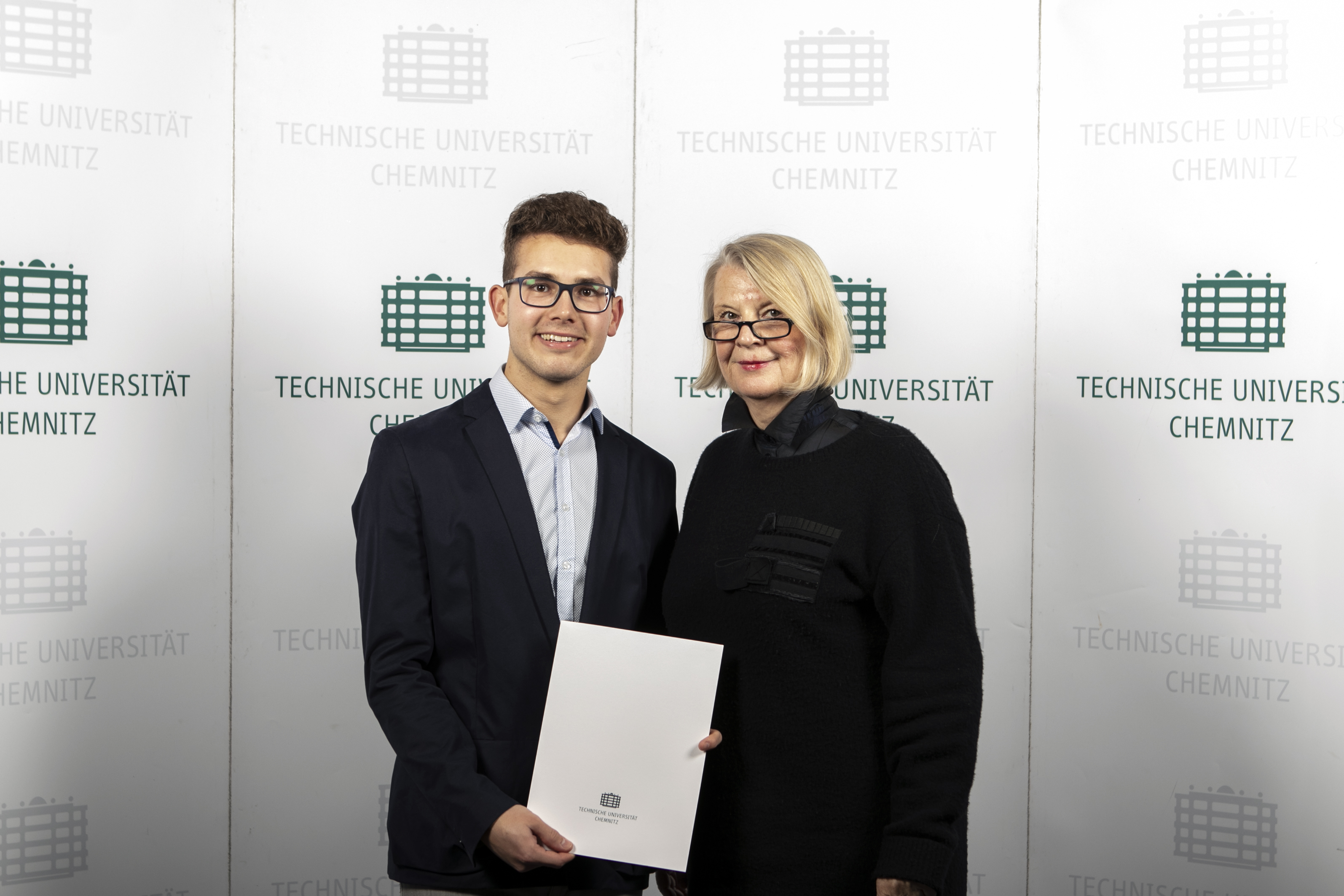Lukas Renke und Ulrike Brummert bei der Übergabe des Deutschlandstipendiums