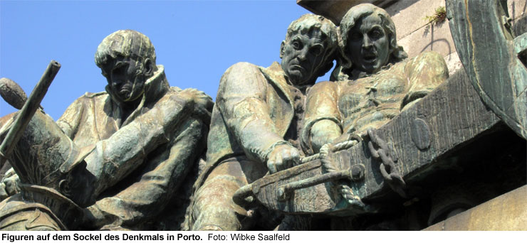 Auf der Vorderseite des Monuments sieht man die portugiesische Bevölkerung sowie die britischen Truppen Seite an Seite kämpfend. Zu ihren Füßen liegt ein besiegter französischer Soldat mit seinem Pferd. Unter ihnen ist das Wappen der Stadt Porto abgebildet.