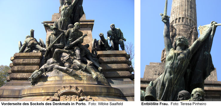 Einen weiteren wichtigen Beitrag zur Errichtung des Monuments leistete der Wandel Portugals von einer Monarchie zur Republik. Nach dem Guerra Peninsular wurde die absolute durch eine konstitutionelle Monarchie ersetzt und es bildete sich, wie in anderen Ländern Europas, ein selbstbewusstes, politisch aktives Bürgertum. In Portugal wurden der zunehmende Wohlstand und die politische Sicherheit jedoch durch zwei wichtige Ereignisse des späten 19. Jahrhunderts gefährdet. Zum einen scheiterte der Versuch Portugals als Kolonialimperium wieder alte Größe zu erreichen am Widerstand Großbritanniens und Belgiens. Dies wurde von großen Teilen der Bevölkerung und von den nationalistischen Republikanern als Demütigung Portugals empfunden und resultierte in einem Vertrauensverlust in die portugiesische Monarchie. Zum anderen führte eine längere wirtschaftliche Rezession in den neunziger Jahren des 19. Jahrhunderts zu einer Verarmung der portugiesischen Arbeiterklasse. Die republikanische Opposition machte die politische Führung und die Monarchie für ihre schwierige Lage verantwortlich und forderte zunehmend deren Abschaffung und die Gründung einer Republik. Republikanischer Extremismus und politische Unruhen führten letztendlich zur Ermordung von König Carlos und seinem Thronfolger im Jahre 1908. Nur zwei Jahre später dankte sein Nachfolger, Manuel II. ab und beendete somit die beinahe 800 Jahre alte Monarchie zugunsten einer neuen Republik. Das Denkmal in Porto spiegelt viele nationalistische und republikanische Ideale wieder. Zum einen wird der Kampf gegen die französischen Einfälle nicht als Kampf zwischen portugiesischen und französischen Soldaten dargestellt, sondern als ein Kampf des portugiesischen Volkes gegen Unterdrückung. Die Figur der Frau auf der Vorderseite des Denkmals in Porto symbolisiert das Ideal der Freiheit und Gerechtigkeit. Sie führt die portugiesischen Helden gegen die französische Besatzung an. Durch ihren Einsatz retten sie die verzweifelte und in Not geratene Bevölkerung, welche durch die Frau mit Kind auf dem gekenterten Schiff auf der Rückseite symbolisiert wird. Während bei vielen anderen Monumenten eine Führungsperson im Mittelpunkt steht, fällt bei den Denkmälern Lissabons und Portos dem Volk zentrale Bedeutung zu. Symptomatisch hierfür ist die Tatsache, dass dem König, der zu Zeiten des Guerra Peninsular nach Brasilien geflüchtet war, auf dem Denkmal keine Figur gewidmet wird.