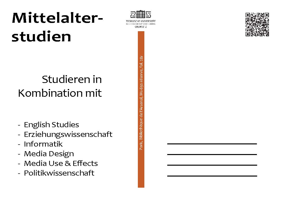 Dies wird auch durch die im Nebenfach vermittelten Kompetenzen verstärkt: Der Umgang mit Texten und Quellen des Mittelalters schult die Absolventinnen und Absolventen in Kompetenzen, die für ihre berufliche Laufbahn in der Gegenwart wichtig sind. Hierzu zählen ein Verständnis etwa von Historizität, Perspektivität, Literarizität und den verschiedenen Bezugnahmen und Verbindungen zwischen unserer Moderne und dem Mittelalter. Ohne Mittelalter gibt es keine Moderne und ohne ein Verständnis von Mittelalter bleibt das Verständnis der Moderne begrenzt.