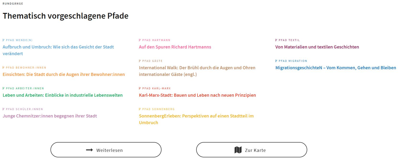 Du erlebst, wie Stadtgeschichte durch die beteiligten Menschen geschrieben wird und wie sie erinnert und erzählt wird. Dieser digitale Guide führt Dich zu Zeugnissen früherer Industrieproduktion und des Lebens als Fabrikarbeiter:in. Du erlebst, wie Chemnitz zu Karl-Marx-Stadt und wieder zu Chemnitz wurde und erfährst, wie junge Chemnitzer:innen, Bewohner:innen, zugewanderte Menschen und Besucher:innen diese Veränderungen wahrnehmen und einordnen.