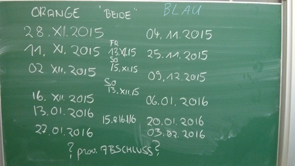 Die Termine für die Gruppe 'BLAU'