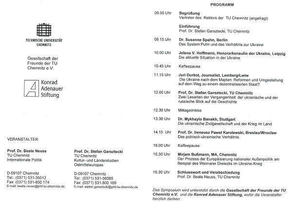 13.11.2015 (Freitag, Zusammen mit Gruppe 'ORANGE', Tagung 'Krieg in der Ukraine - Testfall für Europa?')