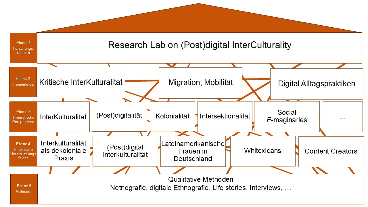 Im Rahmen des Research Lab on Postdigital (inter)culturality werden Daten zur Untersuchung von (inter)kulturellen Praktiken, postdigitalen Kulturen, digitalen Migrationsstudien und Kolonialität in sozialen Netzwerken beobachtet, gesammelt, analysiert und archiviert sowie qualitative Methoden für die Untersuchung des postdigitalen Kontexts weiterentwickelt.
