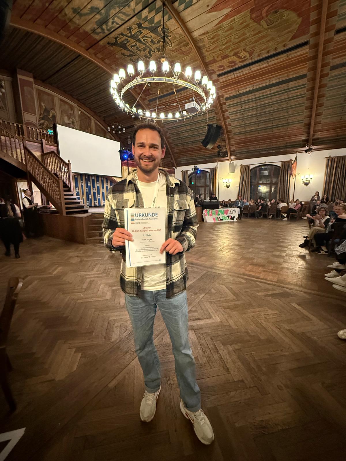 Tim Hujer, M.A., Mitarbeiter der Professur, gewinnt den 1. Posterpreis beim DGfE-Kongress in München.
