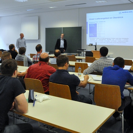 | Auf der Messe LogiMAT, die vom 13. bis 15. März 2018 stattfand, stellte die Denipro AG den modularen Matrix-Sorter denigrid vor. Mit dem System können Fördergüter, z. B. Ladungsträger, gezielt in alle vier Richtungen auf der Förderebene bewegt werden, so dass eine gewünschte Sortierung erreicht wird. Basis des denigrid-Systems sind rollend abgestützte Zahnriemen, welche mit der Firma Breco und uns zusammen entwickelt wurde. | Rollend abgestützter Zahnriemen |